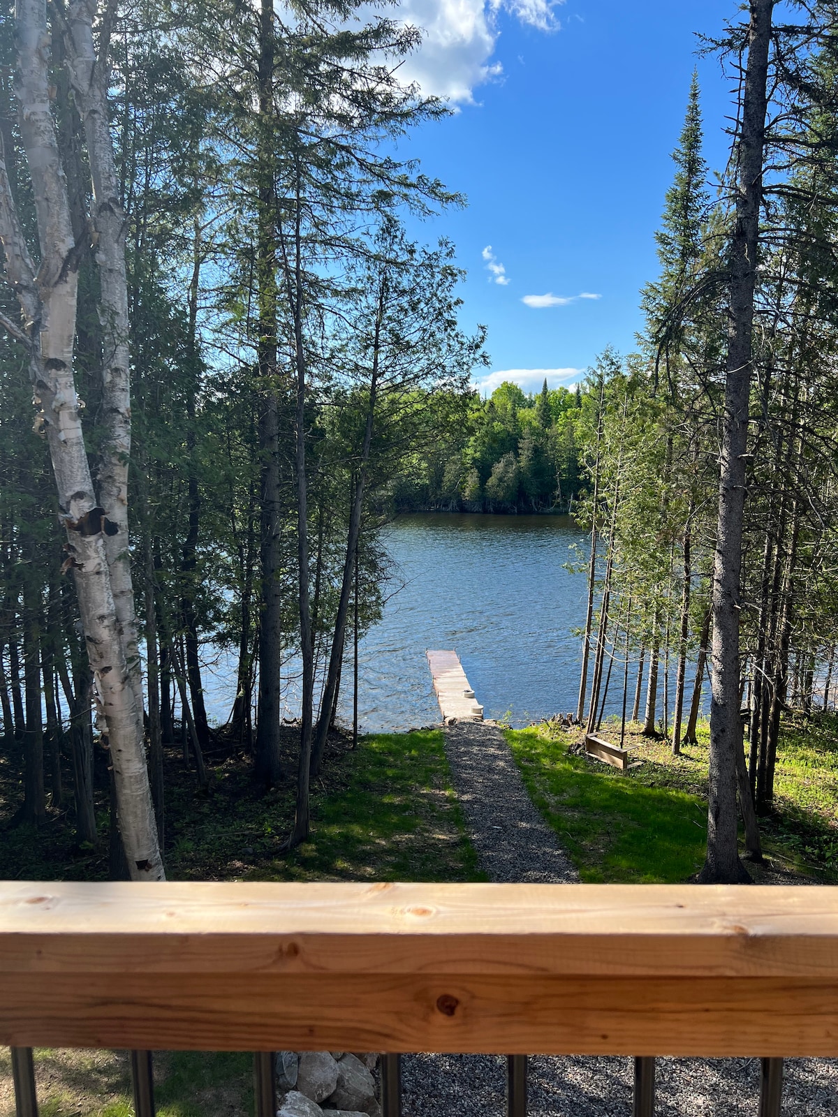 ಇದು ಎರಡು ಪ್ರಾದೇಶಿಕ ಉದ್ಯಾನವನಗಳ ನಡುವೆ, ಪ್ರಕೃತಿ ಪ್ರಯೋಗಗಳಿಂದ ಕೆಲವೇ ನಿಮಿಷಗಳ ನಡಿಗೆ ದೂರದಲ್ಲಿ ಮತ್ತು ಜನನಿಬಿಡ ಪ್ರದೇಶದಿಂದ ದೂರದಲ್ಲಿರುವ ಮರದಿಂದ ಕಟ್ಟಿದ ಶಾಂತವಾದ ಸರೋವರದ ಚಾಲೆ. ಪೂರ್ವ ಕಿಟಕಿಗಳು ನೈಸರ್ಗಿಕ ವಸ್ತುಗಳು ಮತ್ತು ಬೆಚ್ಚಗಿನ ನೆಲದ ಮೇಲೆ ಸಂತೋಷದಾಯಕ ಬೆಳಗಿನ ಬೆಳಕನ್ನು ಬೀಳಲು ಅವಕಾಶ ಮಾಡಿಕೊಡುತ್ತವೆ. ಸಂಜೆ, ಅಗ್ಗಿಸ್ಟಿಕೆ ಬಳಿ ಸುತ್ತುವರಿದ ಧ್ವನಿಯೊಂದಿಗೆ ಆರಾಮದಾಯಕ ಸಿನೆಮಾ, ಸಂಗೀತಕ್ಕೆ ಸೂಕ್ತವಾದ ಟರ್ನ್ಟೇಬಲ್ನೊಂದಿಗೆ ಎರಡನೇ ಮಾಧ್ಯಮ ಕೊಠಡಿ. ಹೊರಾಂಗಣದಲ್ಲಿ, ಒಂದು ಹಾಟ್ ಟಬ್, ಮರದಿಂದ ಉರಿಯುವ ಸೌನಾ, ಸರೋವರದ ಪಕ್ಕದಲ್ಲಿ ಒಂದು ಅಗ್ಗಿಷ್ಟಿಕೆ ಮತ್ತು ಒಂದು ಸ್ಲೈಡ್. ಕ್ರಾಸ್-ಕಂಟ್ರಿ ಸ್ಕೀ, ಸ್ನೋಶೂ ಟ್ರೇಲ್ಗಳು ಕೆಲವೇ ನಿಮಿಷಗಳ ನಡಿಗೆ ದೂರದಲ್ಲಿವೆ ಮತ್ತು ಸ್ನೋಮೊಬೈಲ್ ಮಾರ್ಗಗಳು ಡ್ರೈವ್ವೇಯಿಂದಲೇ ಪ್ರಾರಂಭವಾಗುತ್ತವೆ.