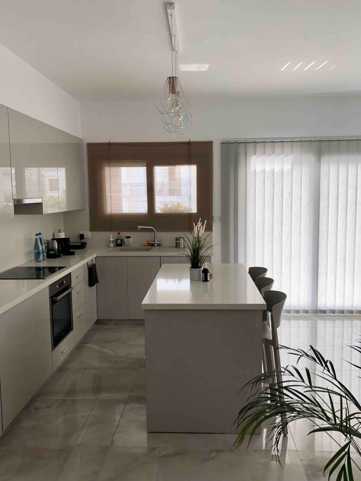 ಲಿಮಾಸ್ಸೋಲ್ನ ಲಿನೋಪೆಟ್ರಾದಲ್ಲಿರುವ ಸಮುದ್ರದಿಂದ 1.6 ಕಿ .ಮೀ ದೂರದಲ್ಲಿರುವ ಸಮಕಾಲೀನ 2 ಬೆಡ್ ಅಪಾರ್ಟ್ಮೆಂಟ್. ನೀವು ಜಕುಝಿಯೊಂದಿಗೆ ಪ್ರೈವೇಟ್ ರೂಫ್ಟಾಪ್ ಟೆರೇಸ್ ಅನ್ನು ಹೊಂದಿದ್ದೀರಿ! ರೂಫ್ಟಾಪ್ನಲ್ಲಿ BBQ, ಫೈರ್ ಪಿಟ್, ವಾಶ್ಬೇಸಿನ್, ಲೌಂಜ್ ಮತ್ತು ಡೈನಿಂಗ್ ಪ್ರದೇಶವನ್ನು ನಗರದ ಮೇಲಿನ ನೋಟದೊಂದಿಗೆ ಅಳವಡಿಸಲಾಗಿದೆ. 2 ಡಬಲ್ ಬೆಡ್ರೂಮ್ಗಳು, 2 ಬಾತ್ರೂಮ್ಗಳು, ಡೈನಿಂಗ್ ಹೊಂದಿರುವ ಆಧುನಿಕ ಸಂಪೂರ್ಣ ಸುಸಜ್ಜಿತ ಅಡುಗೆಮನೆ, ಕವರ್ಡ್ ಬಾಲ್ಕನಿ, ವಿಸ್ತರಿಸುವ ಕಾರ್ಯವಿಧಾನದೊಂದಿಗೆ ಅದ್ಭುತ ಸೋಫಾ ಇವೆ. ಸ್ಮಾರ್ಟ್ ಟಿವಿಯಾದ ನೆಸ್ಪ್ರೆಸೊವನ್ನು ಆನಂದಿಸಿ. ರಸ್ತೆಯಾದ್ಯಂತ ನಿರ್ಮಾಣ ಕಾರ್ಯಗಳು ನಡೆಯುತ್ತಿವೆ ಎಂಬುದನ್ನು ದಯವಿಟ್ಟು ಗಮನಿಸಿ, ಇದು ಶಾಖದಿಂದಾಗಿ ಬೇಗನೆ ಪ್ರಾರಂಭವಾಗಬಹುದು.