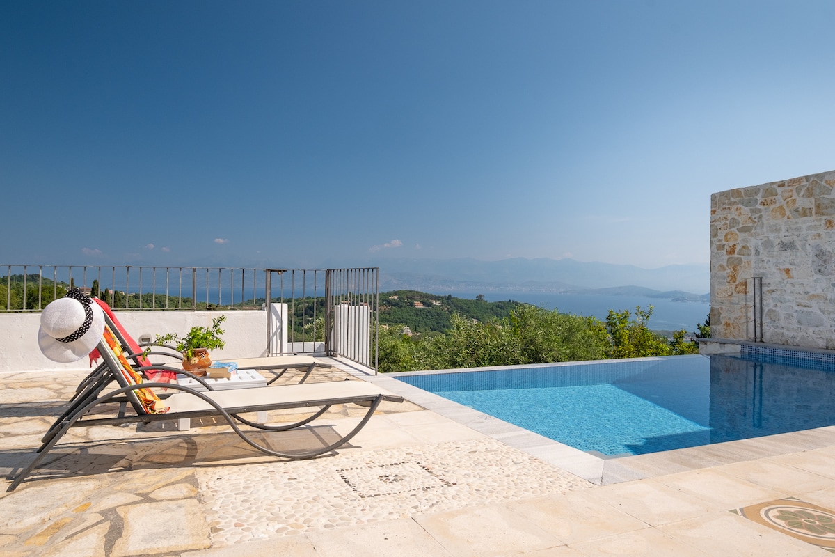 ವಿಲ್ಲಾ ಮೆಲಂತಿ ಹೇರಳವಾಗಿ ಐಷಾರಾಮಿಗಳನ್ನು ಹೊಂದಿದೆ. ಇದು ಕಸ್ಸಿಯೊಪಿ ಗ್ರಾಮದ ಹೊರಗಿನ ಬೆಟ್ಟದ ಮೇಲೆ ಎತ್ತರದ ಸ್ಥಾನದಲ್ಲಿದೆ. ವಿಲ್ಲಾವು ಚದುರಿದ ಸುಂದರವಾದ ಸಸ್ಯಗಳು, ಕಿತ್ತಳೆ ಮತ್ತು ನಿಂಬೆ ಮರಗಳೊಂದಿಗೆ ವಿವಿಧ ಹಂತಗಳಲ್ಲಿ ಎಚ್ಚರಿಕೆಯಿಂದ ವಿನ್ಯಾಸಗೊಳಿಸಲಾದ ಉದ್ಯಾನಗಳಿಂದ ಆವೃತವಾಗಿದೆ. ಸ್ಫಟಿಕದ ನೀರನ್ನು ಹೊಂದಿರುವ ಇನ್ಫಿನಿಟಿ ಪೂಲ್ ಅನ್ನು ವಿಲ್ಲಾದ ಗೆಸ್ಟ್ಗಳ ಅನುಕೂಲಕ್ಕಾಗಿ ಉತ್ತಮವಾಗಿ ವಿನ್ಯಾಸಗೊಳಿಸಲಾಗಿದೆ. ಇಲ್ಲಿನ ವೀಕ್ಷಣೆಗಳು ಸಂಪೂರ್ಣವಾಗಿ ಉಸಿರಾಡುತ್ತವೆ, ಏಕೆಂದರೆ ಗ್ರಾಮೀಣ ಹಸಿರಿನು ಅಯೋನಿಯನ್ ಸಮುದ್ರದ ಕೋಬಾಲ್ಟ್-ಬ್ಲೂಗೆ ಸಂಪೂರ್ಣವಾಗಿ ವ್ಯತಿರಿಕ್ತವಾಗಿದೆ.