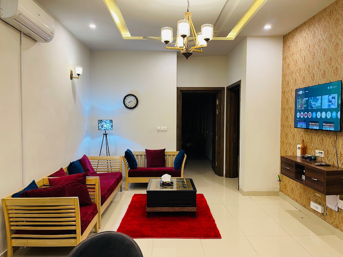 DHA 5 ಇಸ್ಲಾಮಾಬಾದ್ನಲ್ಲಿರುವ ನಮ್ಮ ಸೊಗಸಾದ ಎರಡು ಬೆಡ್ರೂಮ್ ಸೂಟ್ಗಳಿಗೆ ಸುಸ್ವಾಗತ. ತ್ವರಿತ ಪ್ರಯಾಣದ ಅನುಕೂಲತೆಯನ್ನು ಆನಂದಿಸಿ ಮತ್ತು ಸುಂದರವಾದ ಅಲಂಕಾರ ಮತ್ತು ಸಂಪೂರ್ಣ ಸುಸಜ್ಜಿತ ಹೋಮ್ ಥಿಯೇಟರ್ ಅನ್ನು ಒಳಗೊಂಡಿರುವ ಸ್ಥಳದಲ್ಲಿ ವಿಶ್ರಾಂತಿ ಪಡೆಯಿರಿ. ಆರಾಮ ಮತ್ತು ಮನರಂಜನೆಯನ್ನು ಬಯಸುವ ಪ್ರವಾಸಿಗರಿಗೆ ಸೂಕ್ತವಾಗಿದೆ, ಈ ಆರಾಮದಾಯಕವಾದ ರಿಟ್ರೀಟ್ ಅವಿಭಾಜ್ಯ ಸ್ಥಳದಲ್ಲಿ ಆಧುನಿಕ ಸೌಲಭ್ಯಗಳನ್ನು ನೀಡುತ್ತದೆ. ಇದು ಪ್ರತ್ಯೇಕ ಪ್ರವೇಶ ಮತ್ತು ಪಾರ್ಕಿಂಗ್, ಕುಟುಂಬ ಸ್ನೇಹಿ, ಆದ್ದರಿಂದ ತುಂಬಾ ಸುರಕ್ಷಿತ ಮತ್ತು ಶಾಂತಿಯುತವಾದ ಸಂಪೂರ್ಣ ಪ್ರತ್ಯೇಕ ಭಾಗವಾಗಿದೆ. ಪಾರ್ಟಿಗಳು ಮತ್ತು ಜೋರಾದ ಸಂಗೀತವನ್ನು ಅನುಮತಿಸಲಾಗುವುದಿಲ್ಲ. ಅವಿವಾಹಿತ ದಂಪತಿಗಳನ್ನು ಅನುಮತಿಸಲಾಗುವುದಿಲ್ಲ.