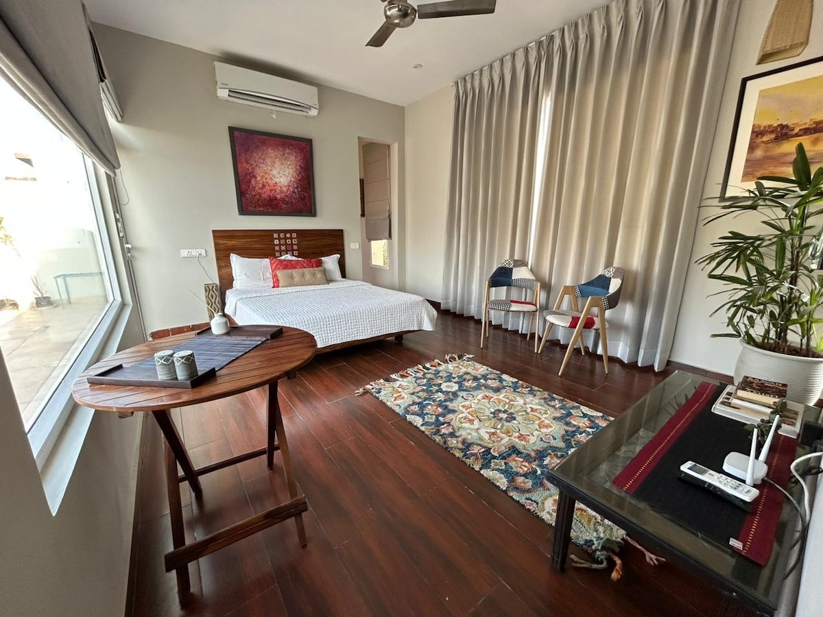 ಈ ಸ್ಥಳವು "ಸುಕೂನ್" ನೊಂದಿಗೆ "ಸಬಾರ್" ಅನ್ನು ನೀಡುವ ವೈಬ್ ಅನ್ನು ಹೊಂದಿದೆ ಈ ಆರಾಮದಾಯಕ 1-ಬೆಡ್ರೂಮ್ ಮನೆ ನಿಮಗೆ ಆರಾಮದಾಯಕ ಮತ್ತು ಆರಾಮದಾಯಕ ವಾಸ್ತವ್ಯಕ್ಕೆ ಅಗತ್ಯವಿರುವ ಎಲ್ಲವನ್ನೂ ನೀಡುತ್ತದೆ. ನೀವು ಸುಸಜ್ಜಿತ ಅಡುಗೆಮನೆ, ಎಲ್ಲಾ ಅಗತ್ಯ ಸೌಲಭ್ಯಗಳನ್ನು ಹೊಂದಿರುವ ಉತ್ತಮ ಬಾತ್ರೂಮ್ ಮತ್ತು ಹಳ್ಳಿಗಾಡಿನ ಉದ್ಯಾನವನ್ನು ಆನಂದಿಸುತ್ತೀರಿ — ಬೆಳಗಿನ ಕಾಫಿ ಅಥವಾ ಸಂಜೆ BBQ ಗೆ ಸೂಕ್ತವಾಗಿದೆ. ಈ ಸ್ಥಳವನ್ನು ಅಲ್ಪಾವಧಿಯ ಮತ್ತು ವಿಸ್ತೃತ ವಾಸ್ತವ್ಯಕ್ಕಾಗಿ ಚಿಂತನಶೀಲವಾಗಿ ವಿನ್ಯಾಸಗೊಳಿಸಲಾಗಿದೆ. ವಿಶ್ವಾಸಾರ್ಹ ಪವರ್ ಬ್ಯಾಕಪ್ ಆದ್ದರಿಂದ ನೀವು ಯಾವಾಗಲೂ ಸಂಪರ್ಕ ಹೊಂದಿರುತ್ತೀರಿ ಮತ್ತು ಆರಾಮದಾಯಕವಾಗಿರುತ್ತೀರಿ.