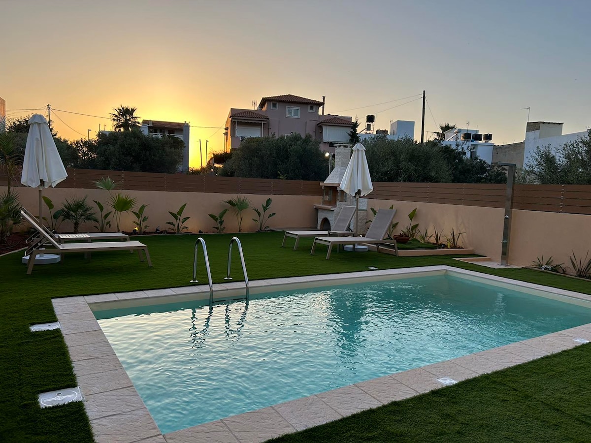 ಹೆರಾಕ್ಲಿಯನ್ ವಿಮಾನ ನಿಲ್ದಾಣದ ಬಳಿ ಆಲಿವ್ ಮರಗಳಿಂದ ಆವೃತವಾಗಿರುವ ಶಾಂತಿಯುತ ಅಗ್ರಿಯಾನಾ ಗ್ರಾಮವಿದೆ. ಎರಡು ವಿಲ್ಲಾಗಳಲ್ಲಿ ಒಂದಾದ ಎಥೆರಾ ವಿಲ್ಲಾ I, ಬೇಲಿ ಹಾಕಿದ ಪ್ರದೇಶ ಮತ್ತು ಎಲೆಕ್ಟ್ರಿಕ್ ಗೇಟ್ನೊಂದಿಗೆ ಗೌಪ್ಯತೆಯನ್ನು ನೀಡುತ್ತದೆ. ಇದು ಪ್ರೈವೇಟ್ ಪೂಲ್, ಪೆರ್ಗೊಲಾ, BBQ, ಎನ್-ಸೂಟ್ ಬಾತ್ರೂಮ್ಗಳನ್ನು ಹೊಂದಿರುವ ಎರಡು ವಿಶಾಲವಾದ ಬೆಡ್ರೂಮ್ಗಳು ಮತ್ತು ಪೂರ್ಣ ಅಡುಗೆಮನೆ ಹೊಂದಿರುವ ಲಿವಿಂಗ್ ರೂಮ್ ಅನ್ನು ಒಳಗೊಂಡಿದೆ. ತಾಳೆ ಮರಗಳನ್ನು ಹೊಂದಿರುವ ಸೊಂಪಾದ ಉದ್ಯಾನವು ಉಷ್ಣವಲಯದ ವಾತಾವರಣವನ್ನು ಸೃಷ್ಟಿಸುತ್ತದೆ. ವಿಲ್ಲಾ ಹವಾನಿಯಂತ್ರಣ, ಹೀಟಿಂಗ್ ಮತ್ತು LG ಸ್ಮಾರ್ಟ್ ಟಿವಿಯನ್ನು ಹೊಂದಿದೆ. ವಿನಂತಿಯ ಮೇರೆಗೆ ಭದ್ರತಾ ಕ್ಯಾಮರಾಗಳನ್ನು ಆಫ್ ಮಾಡಬಹುದು. ನಿಮ್ಮ ಪರಿಪೂರ್ಣ ವಾಸ್ತವ್ಯವನ್ನು ಆನಂದಿಸಿ!