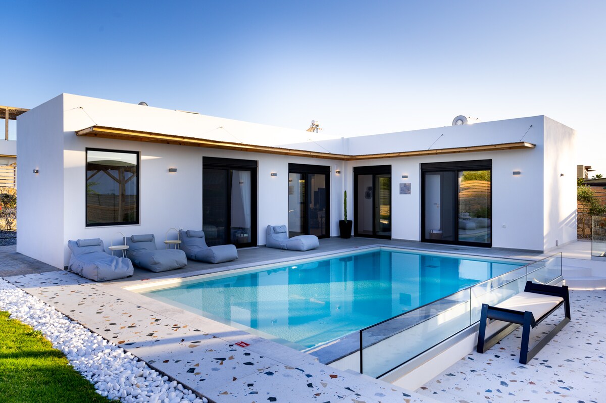 Discover an oasis of calm and recreation located in the heart of Analipsis in Crete. Nagia Luxury Family Villas are a collection of three newly built and luxurious villas, specially designed for families with children and infants. The quiet and convenient location that is only a few minutes away from the beach, the private yard with a swimming pool surrounded with grass lawn, and a wide range of activities in the area will give you carefree and cheerful family moments that you’ll never forget.