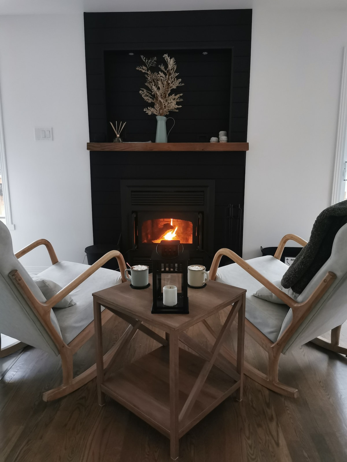 Surrounded by nature, this 1,350 ft² chalet balances tranquility and convenience. Walk to everything: ski, sledding, ice rink, snowmobile trails, bakery, and grocery. Features a private spa with hot tub and wood-burning sauna. The 3-story layout ensures autonomy. Heated floors, distinct living areas, and 2 cinema zones allow the group to split up for work, movies and gaming, or come together. Kitchen is generously equipped for serious cooking + a premium espresso machine for sunny mornings.