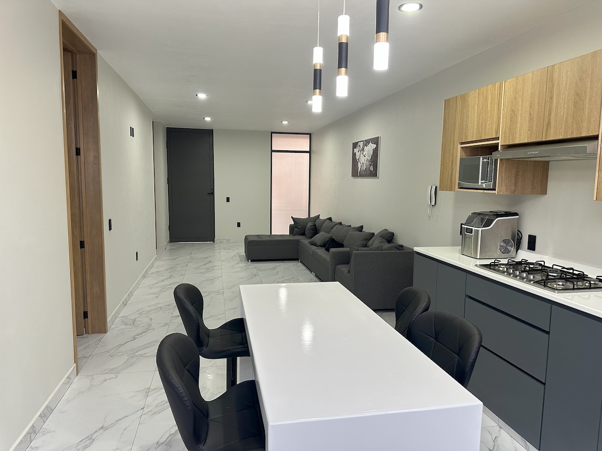 Vuelve a conectar contigo El alojamiento es un Loft- Departamento (privado completo) estilo contemporáneo, de gran diseño, con una vista increíble hacia áreas verdes. Tiene: -1 habitación principal -cama King , con 1 baño completo. -1 habitación- 1 cama King . -1 baño completo en áreas comunes. -1 habitación- 1 cama matrimonial. -Cocina y patio. -Sala con ventana- barandal . Cuenta con 2 sofacamas con capacidad de 1 personas en c/u (2 en total). -Cocina integral completa con cubierta de granito