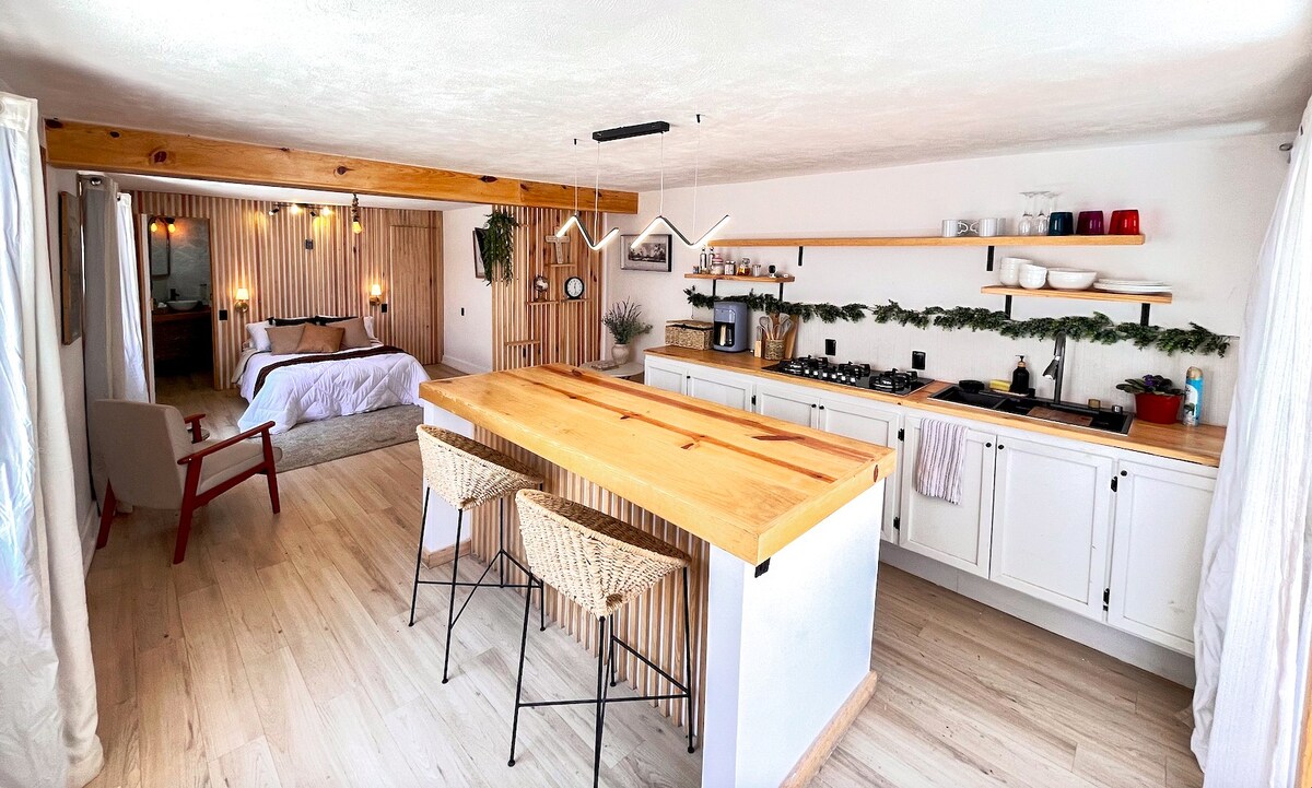 ಈ ಆಧುನಿಕ ಕೈಗಾರಿಕಾ ಶೈಲಿಯ ಅಪಾರ್ಟ್ಮೆಂಟ್ನಿಂದ ಕ್ವೆರೆಟಾರೊದಲ್ಲಿ ಅತ್ಯಂತ ಉಸಿರುಕಟ್ಟಿಸುವ ವೀಕ್ಷಣೆಗಳನ್ನು ಅನ್ವೇಷಿಸಿ. ಡೌನ್ಟೌನ್ನಿಂದ ಕೇವಲ 10 ನಿಮಿಷಗಳ ದೂರದಲ್ಲಿ, ನಗರ ಮತ್ತು ಪರ್ವತದ ಅದ್ಭುತ ನೋಟಗಳನ್ನು ಆನಂದಿಸಿ. 3 ಜನರವರೆಗಿನ ಗುಂಪುಗಳಿಗೆ ಸೂಕ್ತವಾಗಿದೆ, ಇದು ಆರಾಮ ಮತ್ತು ಶೈಲಿಯನ್ನು ಸಂಯೋಜಿಸುವ ಆರಾಮದಾಯಕ ಮತ್ತು ಕ್ರಿಯಾತ್ಮಕ ಸ್ಥಳವನ್ನು ನೀಡುತ್ತದೆ. ಸುಲಭ ಪ್ರವೇಶ, ಅಂಗಡಿಗಳು ಮತ್ತು ನಿಮ್ಮ ವಾಸ್ತವ್ಯವನ್ನು ಪರಿಶೀಲಿಸುವ ಸಾಮರ್ಥ್ಯಕ್ಕಾಗಿ ವ್ಯವಹಾರದ ಟ್ರಿಪ್ಗಳು ಅಥವಾ ಸಂತೋಷಕ್ಕೆ ಇದು ಸೂಕ್ತವಾಗಿದೆ. ಈ ಅಪಾರ್ಟ್ಮೆಂಟ್ ನೀಡುವ ಆರಾಮವನ್ನು ಅನುಭವಿಸಿ.
