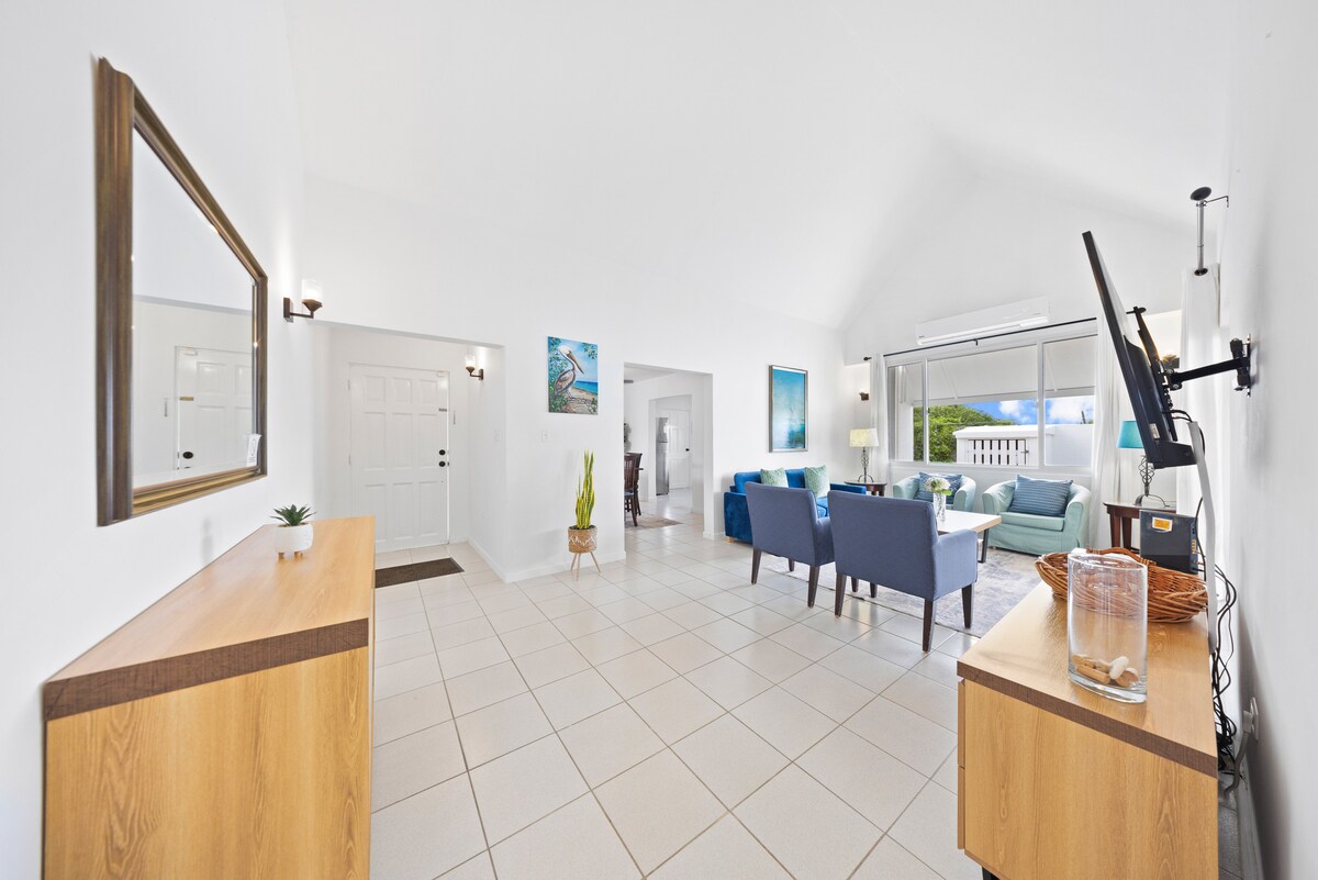 ಅಜೂರ್ ನೀಲಿ ಕೆರಿಬಿಯನ್ ಸಮುದ್ರದ ಬೆರಗುಗೊಳಿಸುವ ವೀಕ್ಷಣೆಗಳೊಂದಿಗೆ ಬೇರ್ಪಡಿಸಿದ ಕಾಟೇಜ್, 4-6 ಜನರಿಗೆ ಪೂರ್ಣಗೊಂಡಿದೆ ಮತ್ತು ಆರಾಮವಾಗಿ ಸಜ್ಜುಗೊಳಿಸಲಾಗಿದೆ (4 ವ್ಯಕ್ತಿಗಳ ಆಧಾರದ ಮೇಲೆ ಬೆಲೆ). ಎರಡು ಎಸಿ ಬೆಡ್ರೂಮ್ಗಳು, 2 ವ್ಯಕ್ತಿಗಳ ಸೋಫಾ ಹಾಸಿಗೆ ಹೊಂದಿರುವ ಎಸಿ ಲಿವಿಂಗ್ ರೂಮ್, ತೆರೆದ ಅಡುಗೆಮನೆ ಮತ್ತು ಸುತ್ತಿಗೆ ಹೊಂದಿರುವ ಹೊರಾಂಗಣ ಟೆರೇಸ್ಗಳು. ಪ್ರವಾಸಿ ಜನಸಂದಣಿಯಿಂದ ದೂರ, ಸುಂದರವಾದ ಕಡಲತೀರಗಳಿಗೆ ಹತ್ತಿರ. ದ್ವೀಪದ ಆಗ್ನೇಯ ಪಾಯಿಂಟ್ನಲ್ಲಿ. ವೇಗದ ಫೈಬರ್ಗ್ಲಾಸ್ ಕೇಬಲ್ ಇಂಟರ್ನೆಟ್ ಪ್ರವೇಶ, ಕೇಬಲ್ ಟಿವಿ, ಹವಾನಿಯಂತ್ರಣ ಹೊಂದಿರುವ ಉಚಿತ ವೈ-ಫೈ. ಖಾಸಗಿ ಸುಸಜ್ಜಿತ ಮುಖಮಂಟಪಗಳು, ಖಾಸಗಿ ಪಾರ್ಕಿಂಗ್ ಮತ್ತು ಇನ್ನಷ್ಟು!