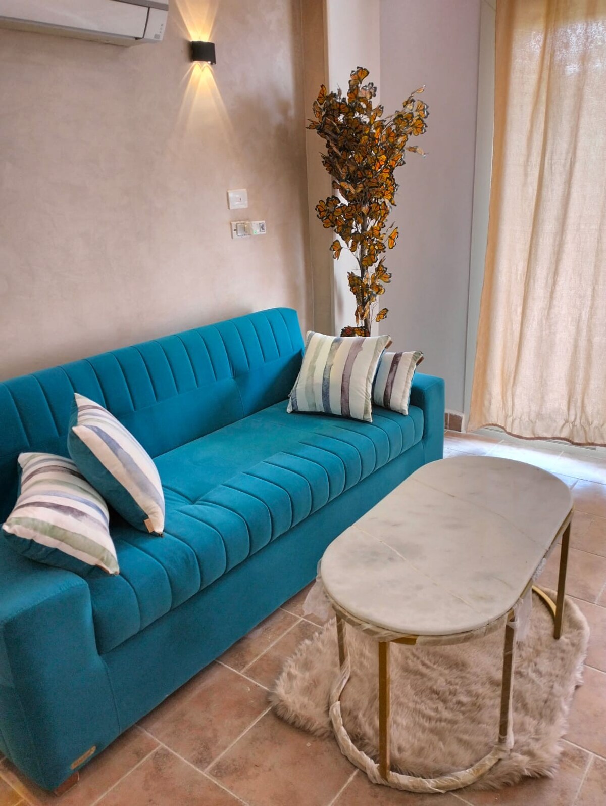 Welcome to your cozy Chalet by the bay! Nestled in the heart of Ein El Sokhna, our charming 2 bedroom chalet offers the perfect getaway for your next vacation. The main area of the chalet is thoughtfully designed, with a comfortable and a well-appointed living area, creating a seamless blend of comfort and functionality. Step out onto the balcony and find a charming nook, beckoning you to unwind with a steaming cup of coffee in the morning or soak in the serene atmosphere as the sun sets.