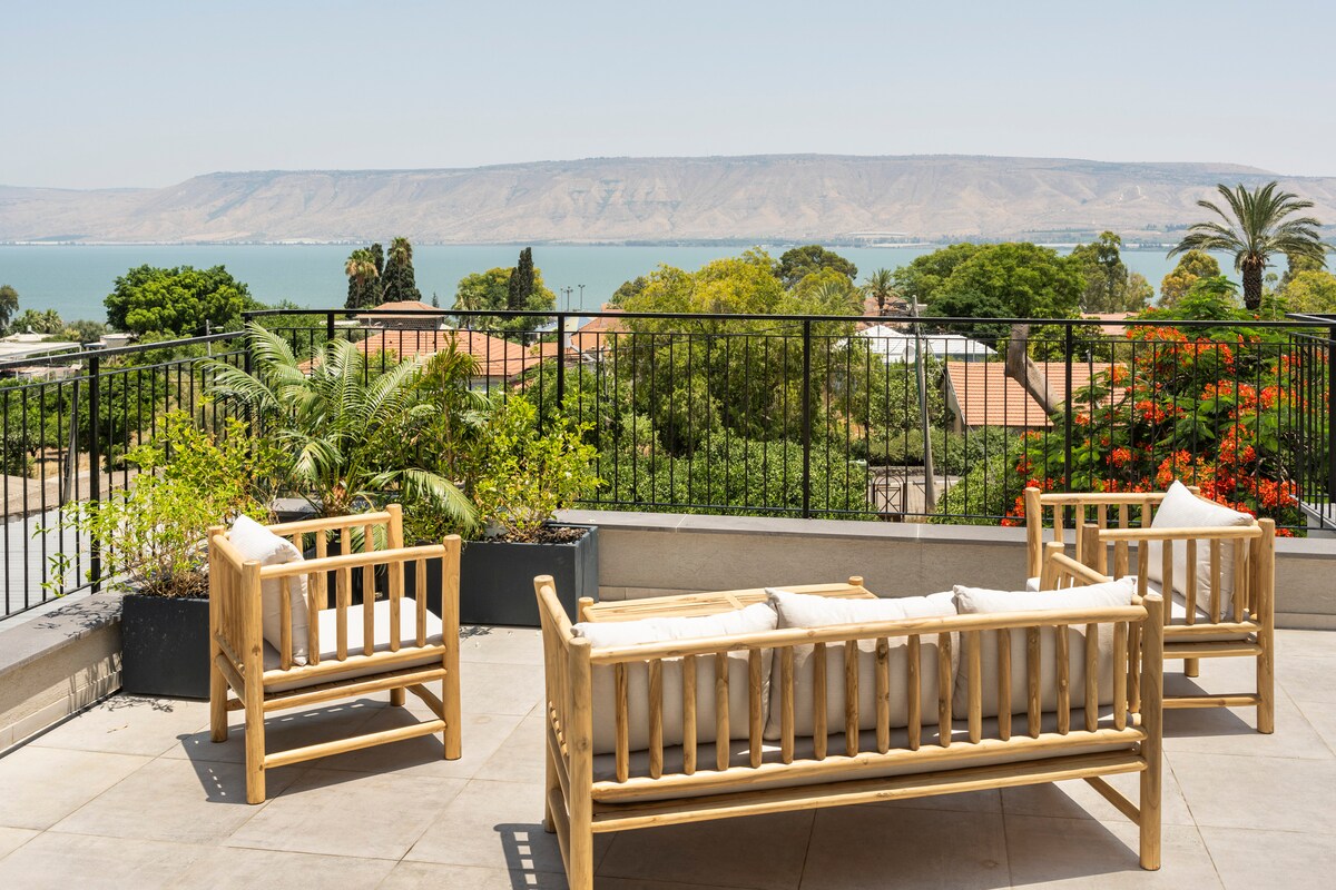 ನಮ್ಮ ಘಟಕವು ಕುಟುಂಬದ ಫಾರ್ಮ್ ಅಂಗಳದ ಆವರಣದಲ್ಲಿದೆ, ಆದ್ದರಿಂದ ನಮ್ಮ ಗೆಸ್ಟ್ಗಳು ಒಂದು ಕಡೆ ನಿಜವಾದ ಸ್ಥಳದ ಭಾಗವಾಗಿದ್ದಾರೆ, ಸರೋವರದ (ಗಲಿಲೀ ಸಮುದ್ರ) ನೋಟವನ್ನು ಪಡೆಯುತ್ತಾರೆ ಮತ್ತು ಮತ್ತೊಂದೆಡೆ ಸೌಂದರ್ಯದ ಆರಾಮ ಮತ್ತು ಗೌಪ್ಯತೆಗಾಗಿ ವಿನ್ಯಾಸಗೊಳಿಸಲಾದ ಶಾಂತಿಯುತ, ಆಹ್ವಾನಿಸುವಿಕೆಯನ್ನು ಆನಂದಿಸುತ್ತಾರೆ. ಈ ಸ್ಥಳವು ತನ್ನದೇ ಆದ ಪ್ರವೇಶವನ್ನು ಹೊಂದಿರುವ ಮನೆಯ ಭಾಗವಾಗಿದೆ. ಇದು ಹೊರಾಂಗಣ ಬಾತ್ಟಬ್ ಹೊಂದಿರುವ ಹೊರಾಂಗಣ ಟೆರೇಸ್ ಅನ್ನು ಹೊಂದಿದೆ. ಈ ಮನೆ ಗಲಿಲೀ ಸಮುದ್ರದಿಂದ 600 ಮೀಟರ್ ದೂರದಲ್ಲಿದೆ (ರಸ್ತೆ 90 ರ ಉದ್ದಕ್ಕೂ).