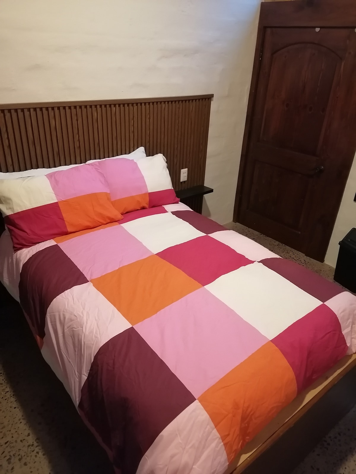 Tu familia estará cerca de todo si te hospedas en este alojamiento céntrico. Está diseñado para que descanses sin complicaciones. El ambiente es rústico-bohemio, con tonos neutros y detalles artesanales que lo hacen acogedor desde que entras. Lo que incluye: • Cama matrimonial + cama individual abatible • Baño de regadera y lavamanos con espejo • Clóset abierto • Toallas, jabón y shampoo • Ambiente tranquilo y seguro cerradura en la puerta de codigo