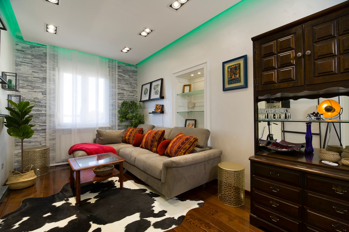 ಜಾಕುಝಿ ಸ್ಪಾ ಹೊಂದಿರುವ ಆಧುನಿಕ ಅಪಾರ್ಟ್ಮೆಂಟ್. ತುಂಬಾ ಉತ್ತಮ ಸ್ಥಳದಲ್ಲಿ, ನಗರ ಕೇಂದ್ರದಿಂದ 12 ನಿಮಿಷಗಳು. ತುಂಬಾ ಉತ್ತಮವಾಗಿದೆ, ಆಹ್ಲಾದಕರ ವಾಸ್ತವ್ಯಕ್ಕಾಗಿ ನಿಮಗೆ ಬೇಕಾದುದನ್ನು ಹೊಂದಿದೆ. 111 ಮಸಾಜ್ ಜೆಟ್ಗಳು, ಬಿಗ್ ಟಿವಿ, 2 ಏರ್ಕಾನ್ಗಳು, ವೈಫೈ, ಬಾತ್ರೂಮ್, ಟಾಯ್ಲೆಟ್, ವಾಶ್ ಮೆಷಿನ್, ಓವನ್, ಐರನ್, ಬೆಡ್ಶೀಟ್ಗಳು, ಟೋವೆಲ್ಗಳನ್ನು ಹೊಂದಿರುವ ಬಿಗ್ ನ್ಯೂ ಜಾಕುಝಿ ಎಲ್ಲವನ್ನೂ ಬೆಲೆಯಲ್ಲಿ ಸೇರಿಸಲಾಗಿದೆ. ಇಬ್ಬರಿಗೆ ಒಂದು ಬೆಡ್ರೂಮ್, ಒಂದು ಬೆಡ್ರೂಮ್ಗೆ ಒಂದು ಬೆಡ್ರೂಮ್ ಮತ್ತು ಲಿವಿಂಗ್ ರೂಮ್ನಲ್ಲಿ ಆರಾಮದಾಯಕವಾದ ಸೋಫಾ ಹಾಸಿಗೆ.