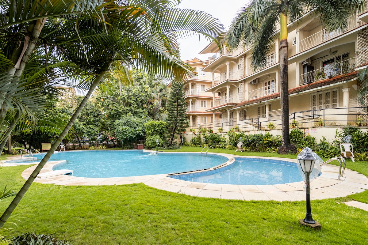 ಪೂಲ್ ವ್ಯೂ ಗ್ರೌಂಡ್ ಫ್ಲೋರ್ 2 BHK, 6 ಗೆಸ್ಟ್ಗಳು, ಕಡಲತೀರಗಳ ಹತ್ತಿರ