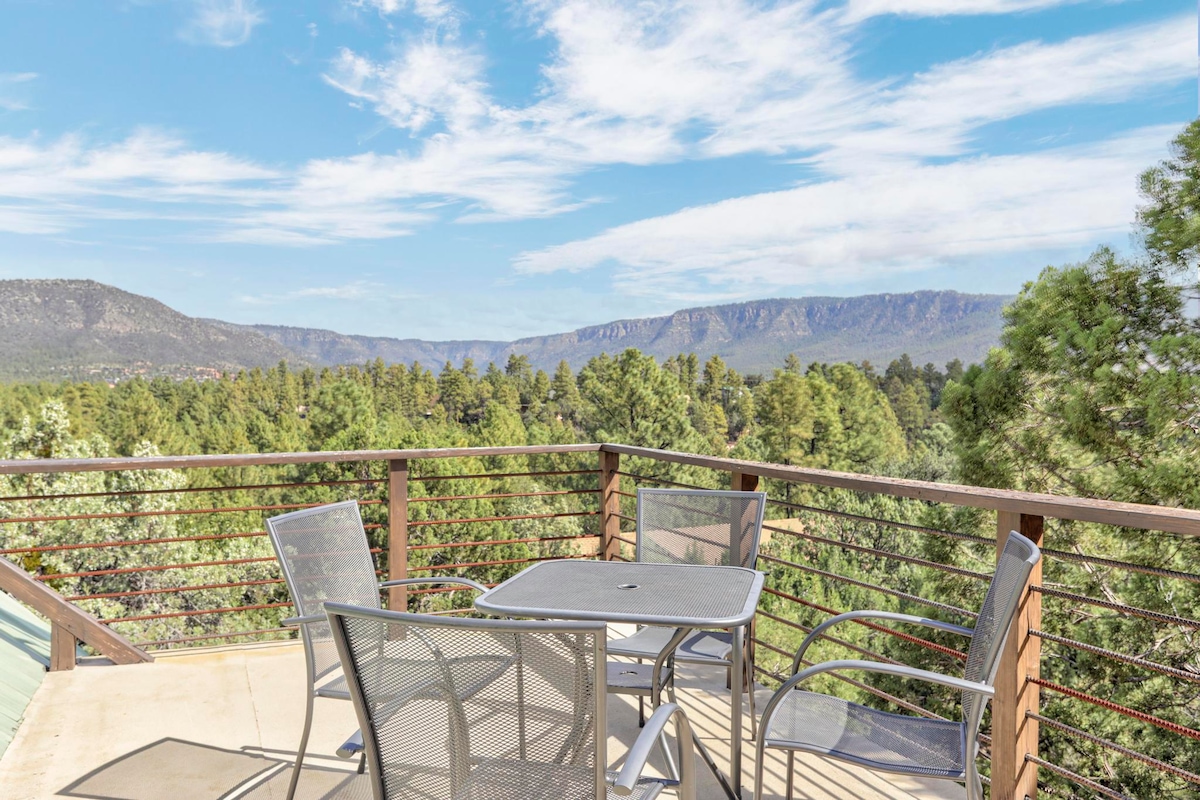 ಪೈನ್ ವ್ಯಾಲಿ ಮತ್ತು ಮೊಗೊಲನ್ ರಿಮ್ನ ವೀಕ್ಷಣೆಗಳು ಇದಕ್ಕಿಂತ ಉತ್ತಮವಾಗಿಲ್ಲ! ನಮ್ಮ 3 ಅಂತಸ್ತಿನ ಕ್ಯಾಬಿನ್ ಪೈನ್ ಮರಗಳ ಮೇಲ್ಭಾಗದಿಂದ ವ್ಯಾಪಕವಾದ ವೀಕ್ಷಣೆಗಳೊಂದಿಗೆ 2 ಡೆಕ್ಗಳನ್ನು ಹೊಂದಿದೆ. 1/3 ಎಕರೆ ಪ್ರದೇಶದಲ್ಲಿ ಪೈನ್ನ ಅಂಚಿನಲ್ಲಿ ಕುಳಿತಿರುವ ಇದು ವೃತ್ತದ ಕೊನೆಯಲ್ಲಿ ಕನಿಷ್ಠ ದಟ್ಟಣೆಯೊಂದಿಗೆ ಖಾಸಗಿಯಾಗಿ ಮತ್ತು ಏಕಾಂತತೆಯನ್ನು ಅನುಭವಿಸುತ್ತದೆ. 2172 sf ಮನೆಯಲ್ಲಿ 4 ಬೆಡ್ರೂಮ್ಗಳು ಮತ್ತು ಪ್ರತಿ ಮಹಡಿಯಲ್ಲಿ ಪೂರ್ಣ ಸ್ನಾನಗೃಹವಿದೆ. ಮಕ್ಕಳನ್ನು ಆಕ್ರಮಿಸಿಕೊಳ್ಳಲು ಮುಖ್ಯ ಹಂತದಲ್ಲಿ 4K 87" ಟಿವಿ ಮತ್ತು ಆಟದ ಕೋಣೆಯಲ್ಲಿ 4K 75" ಕೆಳಗೆ. AZ ಟ್ರೇಲ್ ಮುಂಭಾಗದ ಬಾಗಿಲಿನಿಂದ ಕೇವಲ ಒಂದು ಸಣ್ಣ ನಡಿಗೆಯಾಗಿದೆ.
