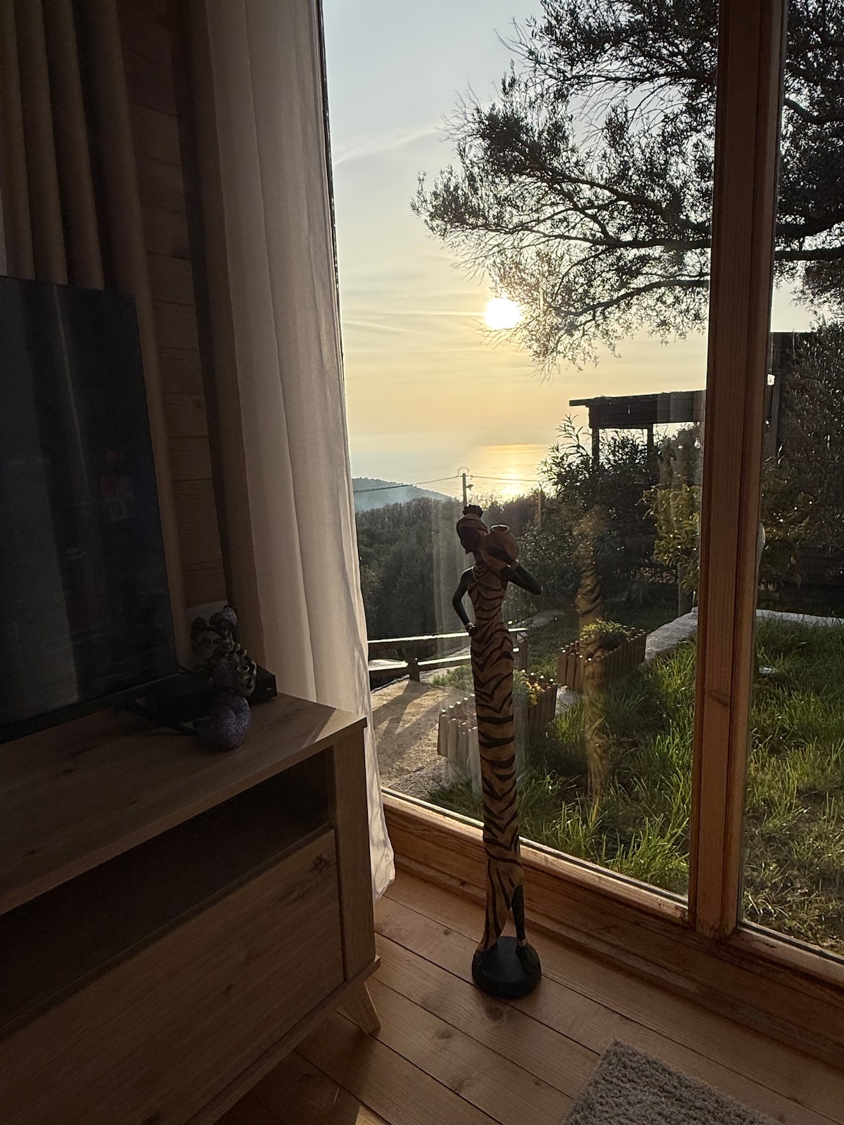 ಈ ಮರದ ಕ್ಯಾಬಿನ್ ನಮ್ಮ ಪ್ರಾಪರ್ಟಿಯ ಮೇಲ್ಭಾಗದಲ್ಲಿ ನಿಂತಿದೆ. ಈ ಸ್ಥಳದಿಂದ ನೀವು ಅತ್ಯುತ್ತಮ ನೋಟವನ್ನು ಹೊಂದಿದ್ದೀರಿ. ಮನೆಯ ಪ್ರತಿಯೊಂದು ಬದಿಯಲ್ಲಿ ನೀವು ಅಲ್ಲಿರುವ ಪರ್ವತಗಳನ್ನು ಉತ್ತಮವಾಗಿ ನೋಡಬಹುದು. ನೀವು ಚಿತ್ರಗಳನ್ನು ನೋಡಿದಾಗ, ಎರಡು-ವ್ಯಕ್ತಿಗಳ ಬೆಡ್ ಸ್ವಲ್ಪ ಮೆಟ್ಟಿಲುಗಳೊಂದಿಗೆ ಮಾತ್ರ ಲಭ್ಯವಿರುವುದನ್ನು ನೀವು ನೋಡಬಹುದು ಅಥವಾ ನೀವು ಕೆಳಗೆ ಸೋಫಾ ಹಾಸಿಗೆಯ ಮೇಲೆ ಮಲಗಬಹುದು. ನೀವು bbq ನಲ್ಲಿ ಬೆಂಕಿ ಹಚ್ಚುವ ಮತ್ತು ಭೋಜನವನ್ನು ತಯಾರಿಸುವ ಸ್ಥಳವಿದೆ. ಟೆರಾಸ್ನಲ್ಲಿ ನಾವು ಪ್ರತಿದಿನ 1 ಮೇಯಿಂದ 1 ಅಕ್ಟೋಬರ್ವರೆಗೆ ಉಪಾಹಾರವನ್ನು ನೀಡುತ್ತೇವೆ