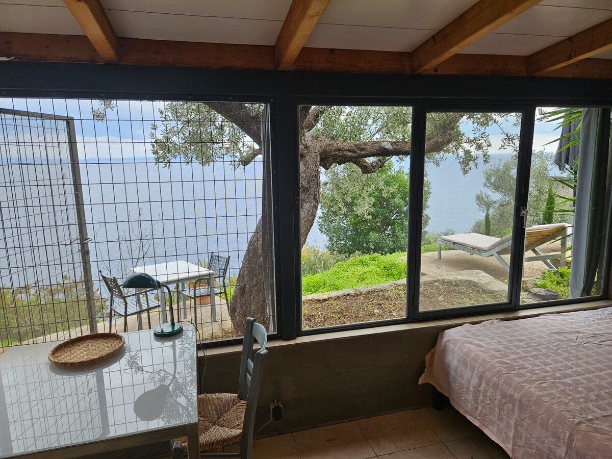 The Small Bungalow is located 35 metres from the sea and the beach is accessible via a path with steps in 4 minutes. On 3 sides the building is surrounded by the ground, while the eastern side is open towards the sea. This side is partly equipped with glass panels and partly with mosquito netting and blackout curtains. With this bioclimatic design a reduced energy footprint is achieved; the house has only one fan and is ideal for holidaymakers seeking simplicity and close contact with nature.