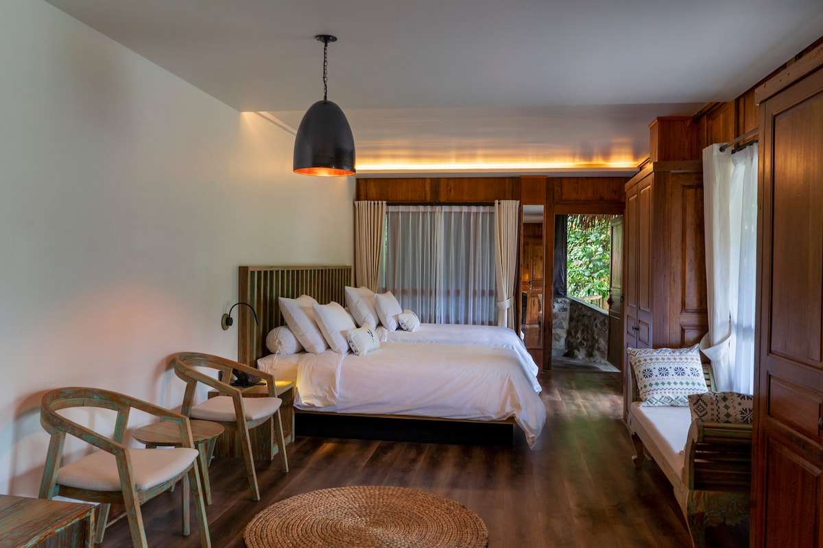 ಆಧುನಿಕ ವಿನ್ಯಾಸವನ್ನು ಹೆಮ್ಮೆಪಡುತ್ತಾ, ಈ ರೆಸಾರ್ಟ್ನಲ್ಲಿರುವ ಪ್ರತಿ ರೂಮ್ ಹವಾನಿಯಂತ್ರಣ ಹೊಂದಿದೆ ಮತ್ತು ಫ್ಲಾಟ್-ಸ್ಕ್ರೀನ್ ಟಿವಿ ಮತ್ತು ಎಲೆಕ್ಟ್ರಿಕ್ ಕೆಟಲ್ನೊಂದಿಗೆ ಅಳವಡಿಸಲಾಗಿದೆ. ನೀವು ವಿಶ್ರಾಂತಿ ಪಡೆಯಲು ಆಸನ ಪ್ರದೇಶವನ್ನು ಒದಗಿಸಲಾಗಿದೆ. ಪ್ರತಿ ರೂಮ್ನಲ್ಲಿ ಗೆಸ್ಟ್ಗಳು ನಿಮ್ಮ ಆರಾಮಕ್ಕಾಗಿ ಖಾಸಗಿ ಮತ್ತು ವಿಶಾಲವಾದ ಬಾತ್ರೂಮ್ ಅನ್ನು ಆನಂದಿಸುತ್ತಾರೆ, ನೀವು ಬಾತ್ರೋಬ್ಗಳು, ಉಚಿತ ಶೌಚಾಲಯಗಳು ಮತ್ತು ಹೇರ್ಡ್ರೈಯರ್ ಅನ್ನು ಕಾಣುತ್ತೀರಿ. ಉಬುಡ್ನ ಮಧ್ಯದಲ್ಲಿ ಇದೆ, ಆದರೂ ರೆಸಾರ್ಟ್ ಉಬುಡ್ನಿಂದ ದೂರದಲ್ಲಿರುವ ಕಾಡಿನಲ್ಲಿರುವಂತೆ ಶಾಂತವಾಗಿದೆ. ಬಾಲಿನೀಸ್ ಆತಿಥ್ಯದೊಂದಿಗೆ ಅತ್ಯುತ್ತಮ ಸೇವೆಯನ್ನು ಹೊಂದಿರುವ 4-ಸ್ಟಾರ್ ರೆಸಾರ್ಟ್.