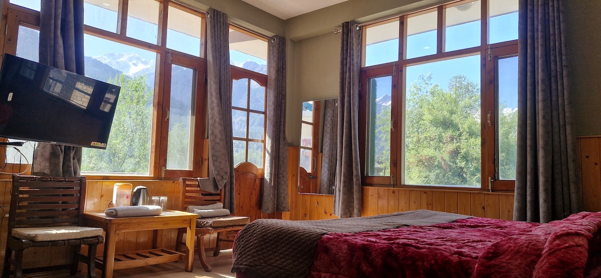 ಐಷಾರಾಮಿ ರೂಮ್ | ವಿಹಂಗಮ ಬಾಲ್ಕನಿ ನೋಟ | ಮನಾಲಿ