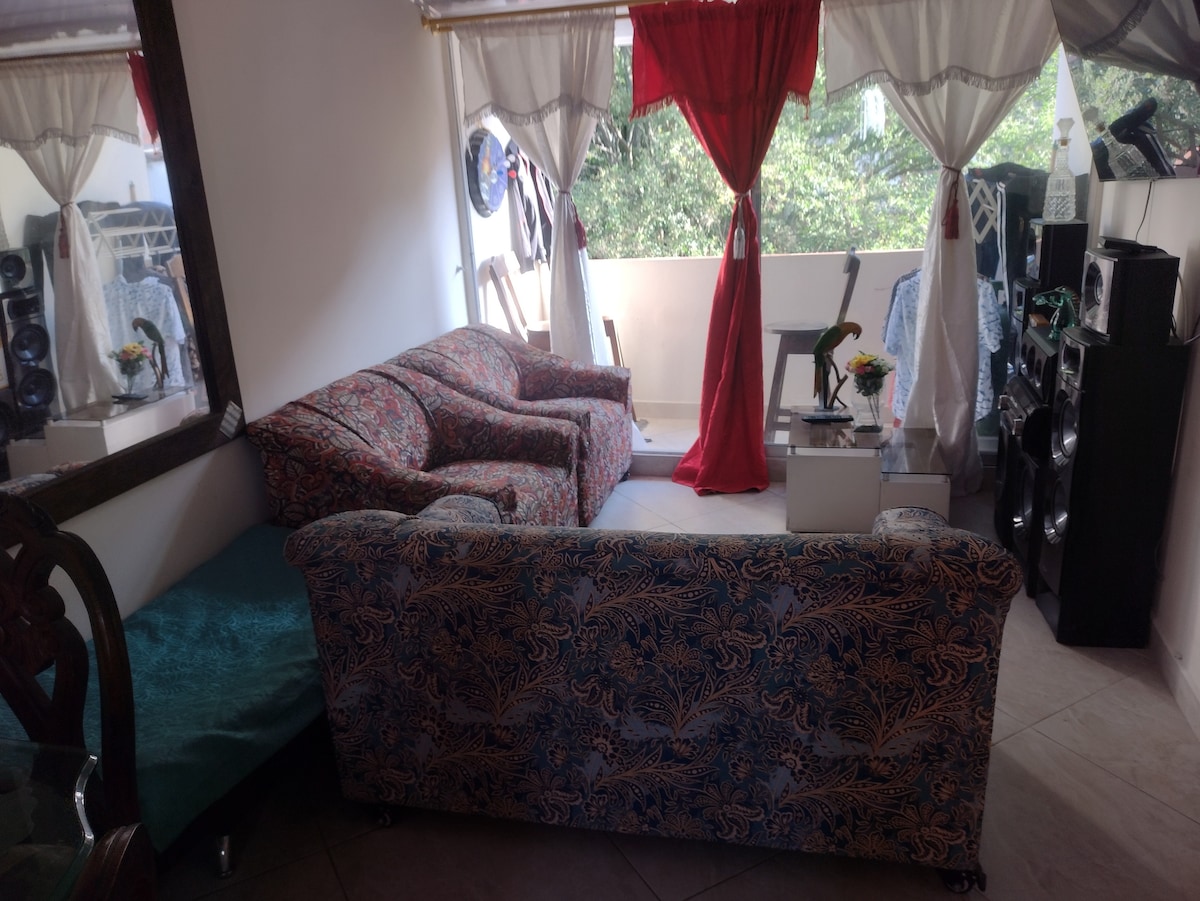 ನಿಮ್ಮ ವಿಶ್ರಾಂತಿಗೆ ಸೂಕ್ತವಾದ ಸ್ಥಳಗಳನ್ನು ಹೊಂದಿರುವ ನಮ್ಮ ಆಧುನಿಕ ಮತ್ತು ಆರಾಮದಾಯಕ ಅಪಾರ್ಟ್ಮೆಂಟ್ಗೆ ಸುಸ್ವಾಗತ, ನಿಮ್ಮ ವಿಶ್ರಾಂತಿಗಾಗಿ ನಾವು 2 ರೂಮ್ಗಳನ್ನು ಸಂಪೂರ್ಣವಾಗಿ ಸಜ್ಜುಗೊಳಿಸಿದ್ದೇವೆ ಮತ್ತು ನಿಮ್ಮ ವಿಶ್ರಾಂತಿಗಾಗಿ ಸಜ್ಜುಗೊಳಿಸಿದ್ದೇವೆ, ನಿಮ್ಮ ಅಗತ್ಯಗಳಿಗಾಗಿ ಅವರು ಪಾತ್ರೆಗಳನ್ನು ಹೊಂದಿರುವ ಅಡುಗೆಮನೆ, ನಿಮ್ಮ ಕೆಲಸದ ಪ್ರದೇಶವನ್ನು ಪರಿವರ್ತಿಸಲು ಉತ್ತಮ ಬೆಳಕು ಮತ್ತು ವೈಫೈ ಹೊಂದಿರುವ ಲಿವಿಂಗ್ ರೂಮ್ ಮತ್ತು ಡೈನಿಂಗ್ ರೂಮ್, ಬಿಸಿ ನೀರು ಮತ್ತು ಬಟ್ಟೆ ಪ್ರದೇಶವನ್ನು ಹೊಂದಿರುವ ಬಾತ್ರೂಮ್.