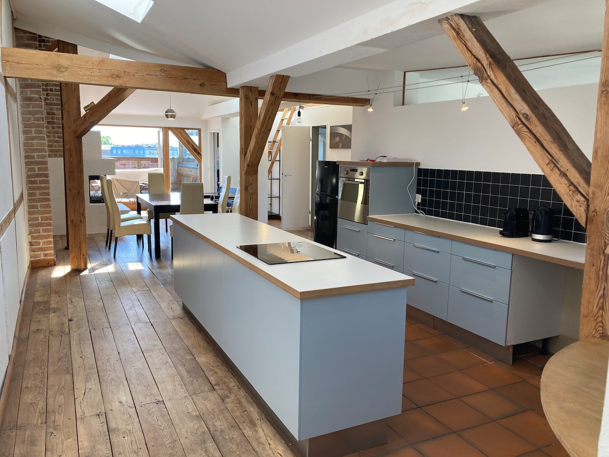 ಟೆರೇಸ್ ಹೊಂದಿರುವ 170m ² ವಿಶೇಷ ಲಾಫ್ಟ್ – ಕೇಂದ್ರ