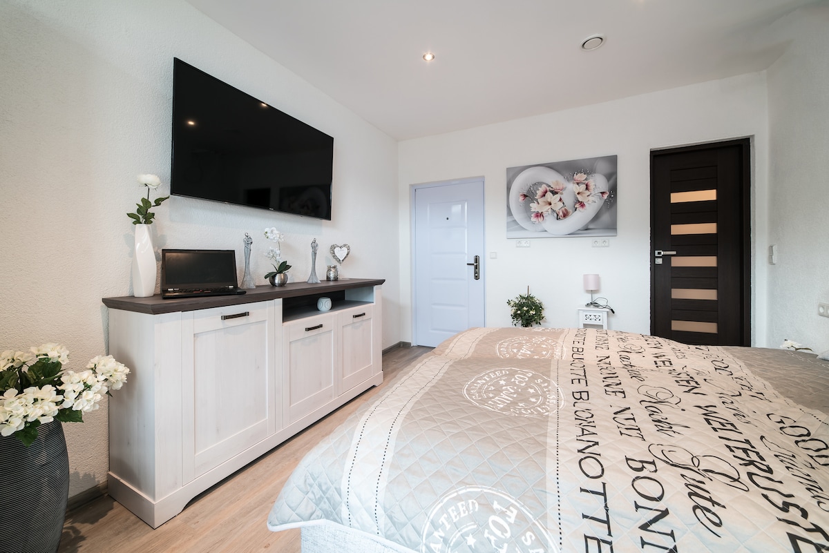 ನವೀಕರಣ ಸಿದ್ಧವಾಗಿದೆ! ಹೊಸ ಚಿತ್ರಗಳು ಆನ್ಲೈನ್ನಲ್ಲಿವೆ! ನನ್ನ ಸ್ಥಳವು ರೈಲು ನಿಲ್ದಾಣಕ್ಕೆ ಹತ್ತಿರದಲ್ಲಿದೆ ಮತ್ತು ಕೇಂದ್ರವನ್ನು ತ್ವರಿತವಾಗಿ ತಲುಪಬಹುದು. ಅದೇನೇ ಇದ್ದರೂ, ಇದು ತುಂಬಾ ಸ್ತಬ್ಧವಾಗಿದೆ. ಈ ಅಪಾರ್ಟ್ಮೆಂಟ್ ವಿಶೇಷವಾಗಿ ಮಕ್ಕಳನ್ನು ಹೊಂದಿರುವ ಕುಟುಂಬಗಳಿಗೆ ಸೂಕ್ತವಾಗಿದೆ, ಸಹಜವಾಗಿ ದಂಪತಿಗಳು ಮತ್ತು ವ್ಯವಹಾರ ಪ್ರಯಾಣಿಕರಿಗೆ ಸಹ. ಅಪಾರ್ಟ್ಮೆಂಟ್ಗೆ ಹೆಚ್ಚುವರಿಯಾಗಿ, ನಾವು ದೊಡ್ಡ ಪ್ರಾಪರ್ಟಿಯನ್ನು ಹೊಂದಿದ್ದೇವೆ, ಅದನ್ನು ವ್ಯವಸ್ಥೆಯಿಂದ ಬಳಸಬಹುದು. ಫಾರ್ಮ್ಹೌಸ್ನಲ್ಲಿ ( ಕಿರಿದಾದ ಡ್ರೈವ್ವೇ) ಕಾರ್ ಪಾರ್ಕಿಂಗ್ ಸ್ಥಳ ಲಭ್ಯವಿದೆ. ಸಾಕುಪ್ರಾಣಿಗಳು ಹಾಗಲ್ಲ!!