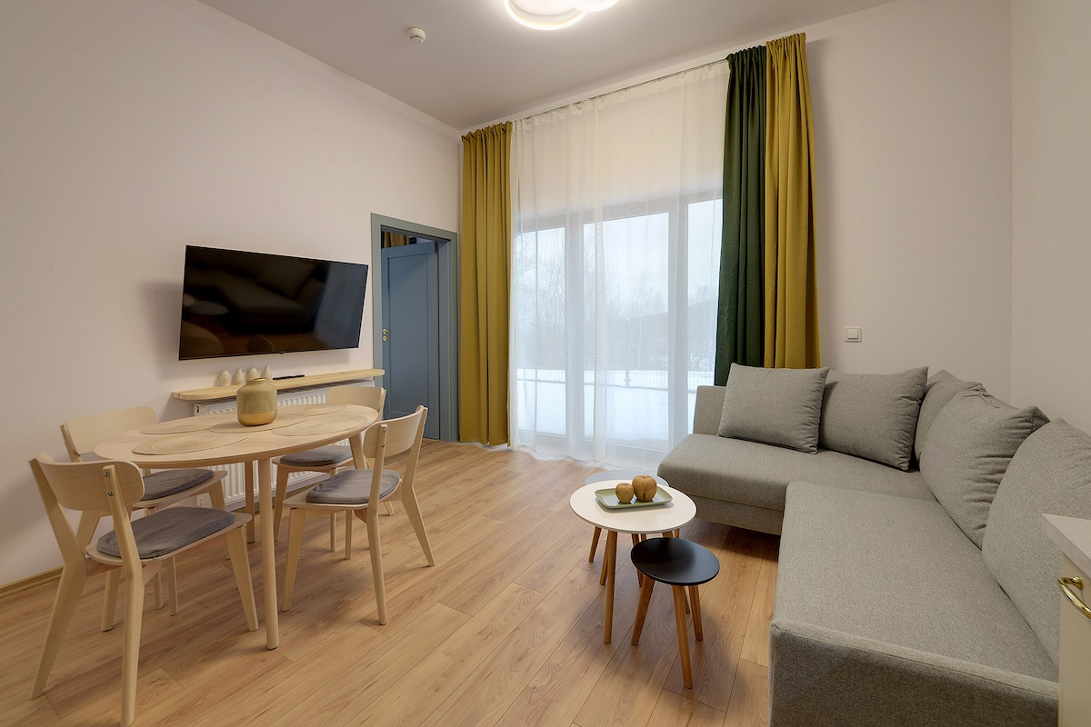 Marzysz o wyjątkowym wypoczynku w mieście uzdrowiskowym? Apartament IGA w Świeradowie-Zdroju to idealna propozycja dla Ciebie i Twoich najbliższych. Nowoczesny lokal wygodnie pomieści 4 osoby. Na powierzchnię ok 43 m² składają się zamykana sypialnia, salon, aneks kuchenny z jadalnią i łazienka z prysznicem. Apartament posiada balkon i znajduje się w centrum. Do Twojej dyspozycji pozostaje prywatne miejsce parkingowe w garażu podziemnym. Za dodatkową opłatą umożliwiamy również pobyt z psem.