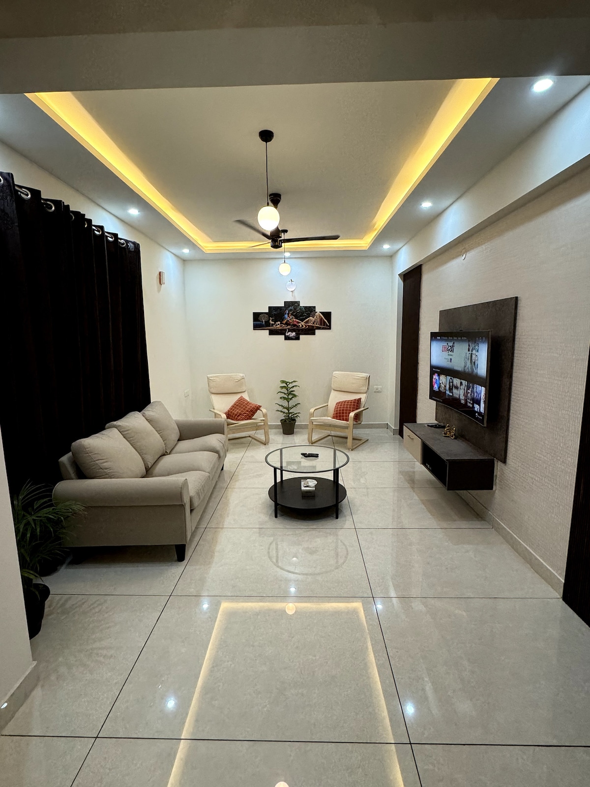ಕಾರ್ಯನಿರತ ದಿನದ ಕೊನೆಯಲ್ಲಿ ಸೂರ್ಯಾಸ್ತದ ಆಕರ್ಷಕ ಪರಿಣಾಮದೊಂದಿಗೆ ನೆರೆಹೊರೆಯ ಬೆಟ್ಟಗಳು ಮತ್ತು ಹಸಿರಿನ ಕೆಲವು ಅದ್ಭುತ ವೀಕ್ಷಣೆಗಳಲ್ಲಿ ನೆನೆಸಿ. ಸ್ವಲ್ಪ ತಾಜಾ ಗಾಳಿಯಲ್ಲಿ ಉಸಿರಾಡಿ ಮತ್ತು ಹೇರಳವಾದ ಒಳಾಂಗಣ ಸಸ್ಯಗಳೊಂದಿಗೆ ಹಸಿರು ಬಣ್ಣವನ್ನು ಆನಂದಿಸಿ. ನಿಮ್ಮ ಎಲ್ಲಾ ಅವಶ್ಯಕತೆಗಳನ್ನು 100 Mbps ಬ್ರಾಡ್ಬ್ಯಾಂಡ್ ಸಂಪರ್ಕ, ನೆಟ್ಫ್ಲಿಕ್ಸ್ಗೆ ಚಂದಾದಾರಿಕೆಯೊಂದಿಗೆ 55 ಇಂಚಿನ ಸೋನಿ ಸ್ಮಾರ್ಟ್ ಟಿವಿ ಮತ್ತು ಪ್ರೈಮ್ ವೀಡಿಯೊ, ಹಾಟ್ಸ್ಟಾರ್ ಇತ್ಯಾದಿಗಳೊಂದಿಗೆ ವಿಂಗಡಿಸಲಾಗಿದೆ. ತ್ವರಿತ ಗಂಟೆ ಕೆಲಸ ಮತ್ತು ಆರಾಮದಾಯಕ ಮಂಚ ಮತ್ತು ಹಾಸಿಗೆಗಾಗಿ maid.laptop ಡೆಸ್ಕ್ನಿಂದ ದೈನಂದಿನ ಶುಚಿಗೊಳಿಸುವಿಕೆ/ಪಾತ್ರೆಗಳು.