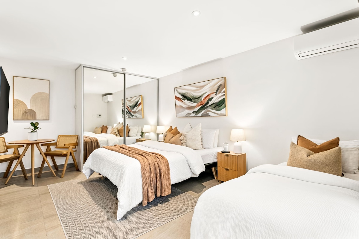 ಬೊಂಡಿ ಕಡಲತೀರಕ್ಕೆ ಸ್ವಲ್ಪ ದೂರದಲ್ಲಿರುವ ಈ ಸೊಗಸಾದ ಮತ್ತು ಕೇಂದ್ರೀಕೃತ ಸ್ಟುಡಿಯೋವನ್ನು ಆನಂದಿಸಿ. ಸೂರ್ಯ ಮತ್ತು ಸರ್ಫ್ ಅನ್ನು ಆನಂದಿಸಿ ನೀವು ಐದು ನಿಮಿಷಗಳಲ್ಲಿ ಮರಳಿನ ಮೇಲೆ ಇರುತ್ತೀರಿ. ಕೆಫೆಗಳು ಮತ್ತು ರೆಸ್ಟೋರೆಂಟ್ಗಳು ಹತ್ತಿರದಲ್ಲಿವೆ ಮತ್ತು ಬೋಂಡಿ ಜಂಕ್ಷನ್ ಅಥವಾ ನಗರಕ್ಕೆ ಕೇವಲ ಎರಡು ನಿಮಿಷಗಳ ದೂರದಲ್ಲಿ ಅನುಕೂಲಕರ ಸಾರಿಗೆ ಆಯ್ಕೆಗಳಿವೆ. ಸ್ವಯಂ ಚೆಕ್-ಇನ್ ಸ್ಟುಡಿಯೋ ಸಂಪೂರ್ಣವಾಗಿ ಖಾಸಗಿಯಾಗಿದೆ. ಇದು ಹತ್ತಿರದಲ್ಲಿದೆ, ಆದರೆ ಮನೆಯಿಂದ ಬೇರ್ಪಟ್ಟಿದೆ. ಇದು ಕ್ವೀನ್ ಬೆಡ್, ಬಾತ್ರೂಮ್/ಶವರ್/ಟಾಯ್ಲೆಟ್ ಮತ್ತು ವಾಷಿಂಗ್ ಮೆಷಿನ್, ಅಡಿಗೆಮನೆ ಮತ್ತು ವಿಶ್ರಾಂತಿ ಹೊರಾಂಗಣ ಸ್ಥಳವನ್ನು ಹೊಂದಿರುವ ಮಲಗುವ ಕೋಣೆಯನ್ನು ಒಳಗೊಂಡಿದೆ.