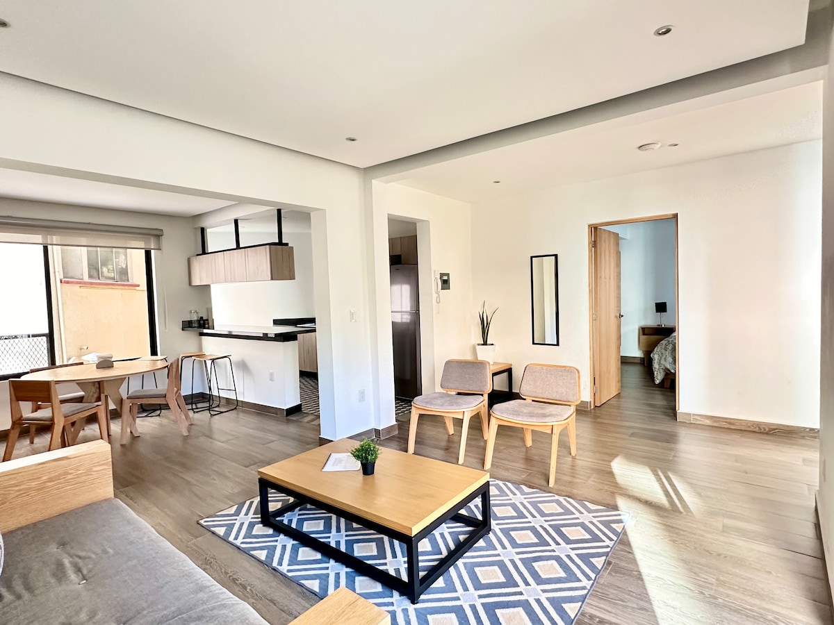 Agradable departamento, ubicado en una de las zonas mas centricas de la Ciudad de Mexico, donde tienes caminando: metro, metrobus, parques, las zonas de moda de la ciudad y supermercados. El departamento tiene una recamara con dos camas matrimoniales, adicionalmente un sofa cama. La terraza cuenta con una mesa, para poder tener comidas al aire libre o simplemente relajarte. La cocina es integral y totalmente equipada. Tambien el departamento cuenta con lavadora y un lugar de estacionamiento.