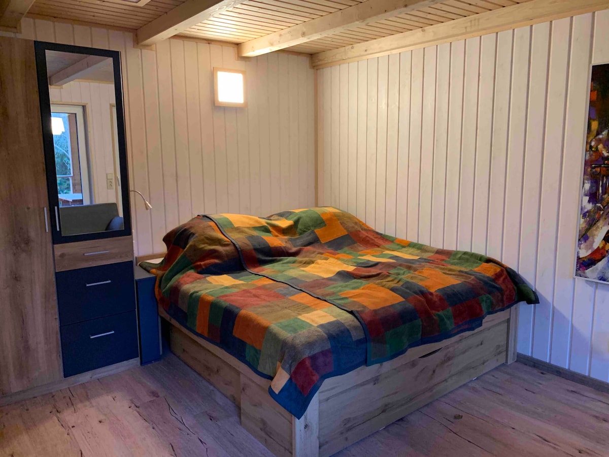 ಮಾರ್ಕಿಸ್ಚೆ ಶ್ವೇಜ್ನಲ್ಲಿರುವ ಸುಂದರವಾದ ವಿನ್ಯಾಸದ ಮರದ ಮನೆ (ಬರ್ಲಿನ್ನಿಂದ 50 ಕಿ .ಮೀ) ಇಹ್ಲೋ ಎಂಬ ಸಣ್ಣ ಕಲಾವಿದ ಗ್ರಾಮದಲ್ಲಿದೆ ಮತ್ತು 65 ಮೀ 2 ವಾಸಿಸುವ ಸ್ಥಳದಲ್ಲಿ ದೊಡ್ಡ ಕಿಟಕಿ ಮುಂಭಾಗ ಮತ್ತು 35 ಮೀ 2 ಕವರ್ ಟೆರೇಸ್ ಪ್ರದೇಶದೊಂದಿಗೆ ಹೊಲಗಳು ಮತ್ತು ಕಾಡುಗಳ ಸುಂದರ ನೋಟವನ್ನು ನೀಡುತ್ತದೆ. ಮರದ ಒಲೆ, ಜೊತೆಗೆ ಎರಡು ಬೆಡ್ರೂಮ್ಗಳು ಮತ್ತು ಬಾತ್ರೂಮ್ ಹೊಂದಿರುವ ದೊಡ್ಡ ಲಿವಿಂಗ್, ಡೈನಿಂಗ್ ಮತ್ತು ಅಡುಗೆ ಪ್ರದೇಶವಿದೆ. ಎರಡೂ ಬೆಡ್ರೂಮ್ಗಳು ಇನ್ಫ್ರಾರೆಡ್ ಹೀಟರ್ ಅನ್ನು ಹೊಂದಿವೆ. ಪ್ರತಿ ಬೆಡ್ರೂಮ್ನಲ್ಲಿ ರಾಣಿ ಗಾತ್ರದ ಹಾಸಿಗೆ (1.60) ಇದೆ.