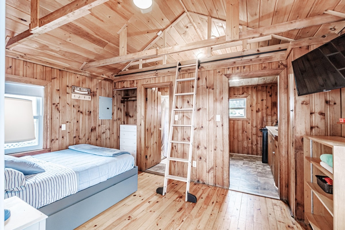 ಬೆಳಕು ಮತ್ತು ಕಲೆಯಿಂದ ತುಂಬಿದ ಮತ್ತು ಸಾಕಷ್ಟು ಆರಾಮದಾಯಕ ವಿವರಗಳೊಂದಿಗೆ ಪ್ರಶಾಂತವಾದ ಸ್ಥಳವಾಗಿ ನಾವು ರೆನ್ ಕ್ಯಾಬಿನ್ ಅನ್ನು ನಿರ್ಮಿಸಿದ್ದೇವೆ. ಎತ್ತರದ ಛಾವಣಿಗಳು, ಸುರುಳಿಯಾಕಾರದ ಮೆಟ್ಟಿಲು ಮತ್ತು ಎತ್ತರದ ಮಲಗುವ ಕೋಣೆಯೊಂದಿಗೆ ದೊಡ್ಡ ತೆರೆದ ಪರಿಕಲ್ಪನೆ. ಕ್ಯಾಬಿನ್ ಆ ತಂಪಾದ ದಿನಗಳಿಗೆ ಬಹುಕಾಂತೀಯ ಮರದಿಂದ ತಯಾರಿಸಿದ ಸೌನಾವನ್ನು ಸಹ ಹೊಂದಿದೆ. ರೆನ್ ಕ್ಯಾಬಿನ್ ವಿಶ್ರಾಂತಿಗಾಗಿ ದೊಡ್ಡ ಸುತ್ತುವ ಡೆಕ್ ಮತ್ತು ಹೊರಾಂಗಣ ಫೈರ್ ಪಿಟ್ ಅನ್ನು ಹೊಂದಿದೆ, ಜೊತೆಗೆ ಆಡಮ್ಸ್ ಕೊಳಕ್ಕೆ ಹಂಚಿಕೊಂಡ ಪ್ರವೇಶವನ್ನು ಹೊಂದಿದೆ. ಈ ಸ್ಥಳವು ಆಧುನಿಕ ಸ್ಕ್ಯಾಂಡಿನೇವಿಯನ್, ಬೆಳಕು ಮತ್ತು ಏರಿ ಮತ್ತು ಚಿಂತನಶೀಲ ವಿವರಗಳಿಂದ ತುಂಬಿದೆ.