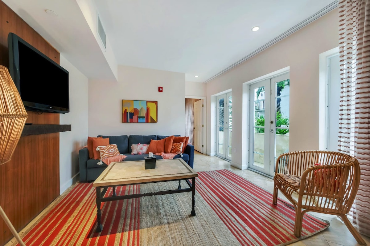 ಪೂಲ್ ಮತ್ತು ಕಡಲತೀರದ ಪ್ರವೇಶದೊಂದಿಗೆ ಸುಂದರವಾದ 1 ಬೆಡ್ರೂಮ್