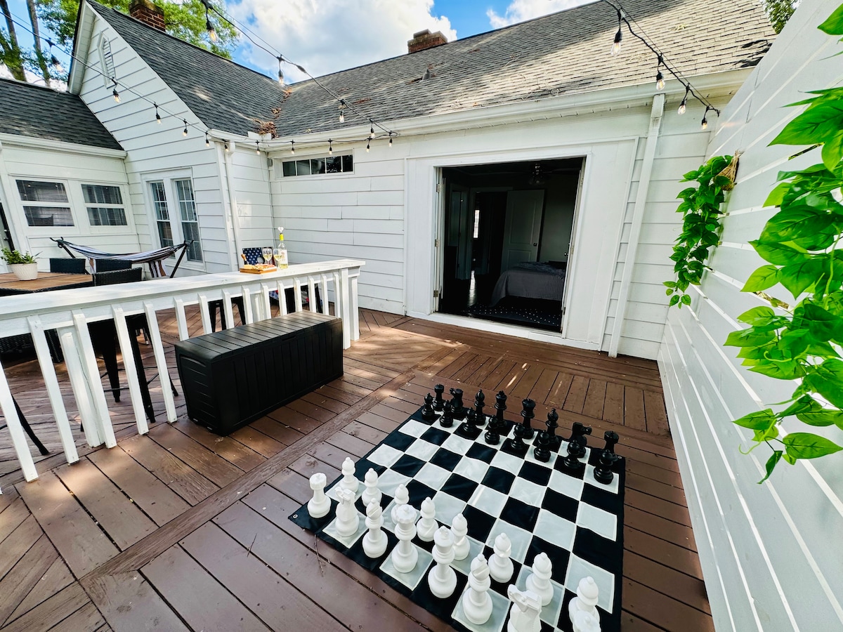 ನಮ್ಮ ವಿಶಾಲವಾದ, 3400 ಚದರ ಅಡಿ ನವೀಕರಿಸಿದ ಮನೆಯಲ್ಲಿ ವಿಸ್ತರಿಸಿ ಮತ್ತು ವಿಶ್ರಾಂತಿ ಪಡೆಯಿರಿ. ಸಮುದಾಯ ಪೂಲ್ನಲ್ಲಿ ಸ್ನಾನ ಮಾಡಿ, ದೊಡ್ಡ ಹಿತ್ತಲಿನಲ್ಲಿ ಕಾರ್ನ್ ಹೋಲ್ ಪ್ಲೇ ಮಾಡಿ, ಅಜ್ಜಿಯ ಅಜೇಯ ಕನೆಕ್ಟ್ 4 ಶೀರ್ಷಿಕೆಯನ್ನು ಸೋಲಿಸಿ ಅಥವಾ ಉತ್ತಮ ಪುಸ್ತಕದೊಂದಿಗೆ ಅಗ್ಗಿಷ್ಟಿಕೆ ಬಳಿ ಲೌಂಜ್ ಮಾಡಿ. ಕಾಫಿ ಬಾರ್ನಲ್ಲಿ ರೀಚಾರ್ಜ್ ಮಾಡಿ ಅಥವಾ ನಮ್ಮ ಸ್ತಬ್ಧ, ಸ್ನೇಹಪರ ನೆರೆಹೊರೆಯ ಸುತ್ತಲೂ ನಡೆಯಿರಿ. ನಮ್ಮ ಸಂಪೂರ್ಣವಾಗಿ ಸಂಗ್ರಹವಾಗಿರುವ ಅಡುಗೆಮನೆಯಲ್ಲಿ ಗೌರ್ಮೆಟ್ ಊಟವನ್ನು ವಿಪ್ ಅಪ್ ಮಾಡಿ ಅಥವಾ ಹೆಚ್ಚಿನ ಸಂಖ್ಯೆಯ ರೆಸ್ಟೋರೆಂಟ್ಗಳಿಗೆ ಸಣ್ಣ ಡ್ರೈವ್ ತೆಗೆದುಕೊಳ್ಳಿ. ನಮ್ಮ ಮೆಮೊರಿ ಫೋಮ್ ಹಾಸಿಗೆಗಳ ಮೇಲೆ ಹಿತವಾದ ಗುಳ್ಳೆ ಸ್ನಾನ ಮತ್ತು ಆರಾಮದಾಯಕ ರಾತ್ರಿಯೊಂದಿಗೆ ನಿಮ್ಮ ದಿನವನ್ನು ಕೊನೆಗೊಳಿಸಿ.