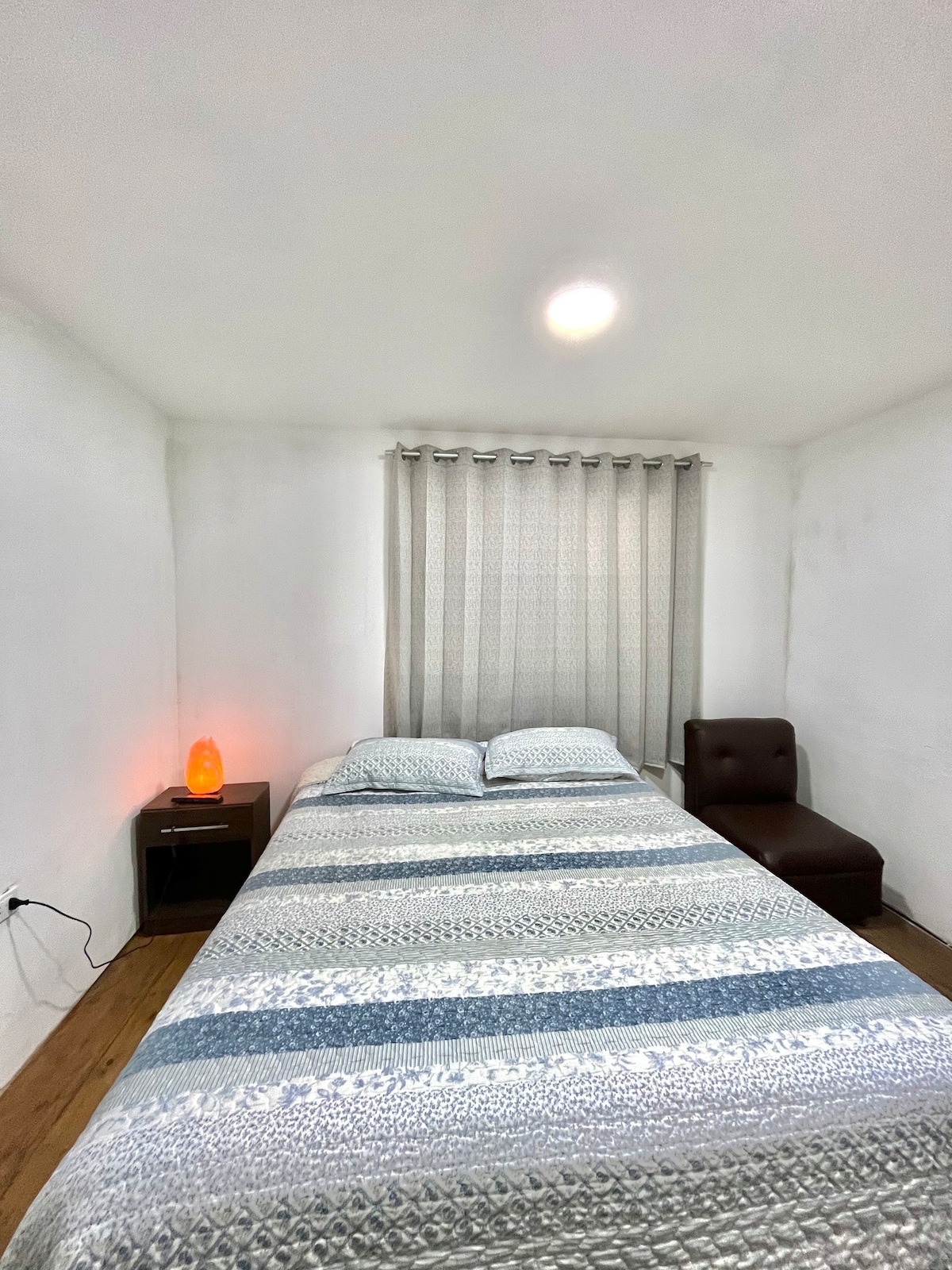 Relájate con toda la familia en este tranquilo, acogedor y espacioso lugar; terraza, kitchenette, baño completo y dos habitaciones. Ubicado a 5 minutos del aeropuerto y cerca de la ciudad. Te ofrecemos el servicio de cable, wifi y agua caliente; además, cochera, área para fogata, pet friendly.