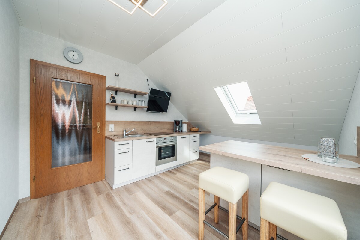 ⸻ ಆರಾಮದಾಯಕ ಅಪಾರ್ಟ್ಮೆಂಟ್ – ದಂಪತಿಗಳು, ಏಕಾಂಗಿ ಪ್ರವಾಸಿಗರು ಅಥವಾ ಫಿಟ್ಟರ್ಗಳಿಗೆ. ಈ ಅಪಾರ್ಟ್ಮೆಂಟ್ ಆಧುನಿಕ ಸೌಲಭ್ಯಗಳು ಮತ್ತು ಉತ್ತಮ ಸಂಪರ್ಕಗಳೊಂದಿಗೆ ಪ್ರೀತಿಯಿಂದ ಪರಿವರ್ತಿತವಾದ ಮಾಜಿ ಬಾರ್ನ್ನಲ್ಲಿದೆ. ಶಾಪಿಂಗ್ ವಾಕಿಂಗ್ ದೂರದಲ್ಲಿದೆ, ಸಾವಯವ ಅಂಗಡಿ ಮನೆಯಲ್ಲಿದೆ. ಪ್ರಕೃತಿ ಪ್ರೇಮಿಗಳು/ಸಕ್ರಿಯ ವಿಹಾರಗಾರರು ಹತ್ತಿರದ ಹ್ಯಾಬಿಚ್ಟ್ಸ್ವಾಲ್ಡ್ ಮತ್ತು ಬುಹ್ಲ್ಸಿಯೊಂದಿಗೆ ಹೈಕಿಂಗ್, ಸೈಕ್ಲಿಂಗ್ ಅಥವಾ ಈಜಲು ಸೂಕ್ತವಾದ ಪರಿಸ್ಥಿತಿಗಳನ್ನು ಕಂಡುಕೊಳ್ಳುತ್ತಾರೆ. ಅಪಾರ್ಟ್ಮೆಂಟ್ ನಿಮಗೆ ವೃತ್ತಿಪರ ವಾಸ್ತವ್ಯಕ್ಕೆ ಅಗತ್ಯವಿರುವ ಎಲ್ಲವನ್ನೂ ಸಹ ನೀಡುತ್ತದೆ.