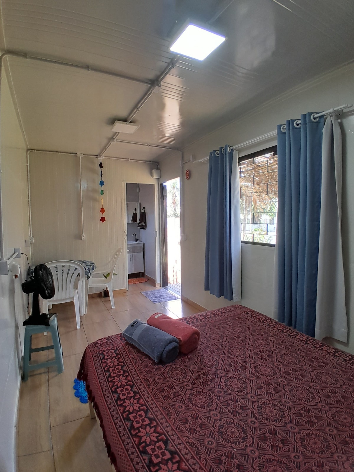 ಸಾಂಟಾ ಕ್ಯಾಟರಿನಾದ ಮಾರಿಸ್ಕಲ್ನಲ್ಲಿರುವ ಆಧುನಿಕ ಮತ್ತು ಆರಾಮದಾಯಕ ವಸತಿಗೃಹವಾದ ಕಾಸಾ ಬ್ಲೂ ಸೂಟ್ಗೆ ಸುಸ್ವಾಗತ! ನಮ್ಮ ಕಂಟೇನರ್ ನಿರ್ಮಿಸಿದ ಪ್ರಾಪರ್ಟಿ ವಿಶ್ರಾಂತಿ ಪಡೆಯಲು ಬಯಸುವವರಿಗೆ ಅನನ್ಯ ಮತ್ತು ಆರಾಮದಾಯಕ ವಾಸ್ತವ್ಯವನ್ನು ನೀಡುತ್ತದೆ. ದಂಪತಿಗಳಿಗೆ ಸೂಕ್ತವಾದ ಸೂಟ್, ಕ್ವೀನ್-ಗಾತ್ರದ ಹಾಸಿಗೆ, ಹವಾನಿಯಂತ್ರಣ, ಸ್ಮಾರ್ಟ್ ಟಿವಿ, ಹೈ ಸ್ಪೀಡ್ ವೈಫೈ ಮತ್ತು ಮಿನಿಬಾರ್ ಅನ್ನು ಹೊಂದಿದೆ. ನಿಮ್ಮ ಅನುಕೂಲಕ್ಕಾಗಿ ನಾವು ಗುಣಮಟ್ಟದ ಹಾಸಿಗೆ ಮತ್ತು ಸ್ನಾನದ ಟವೆಲ್ಗಳನ್ನು ನೀಡುತ್ತೇವೆ. ನೀವು ಸಂಪೂರ್ಣ ಸುಸಜ್ಜಿತ ಹಂಚಿಕೊಂಡ ಅಡುಗೆಮನೆಗೆ ಸಹ ಪ್ರವೇಶವನ್ನು ಹೊಂದಿರುತ್ತೀರಿ.