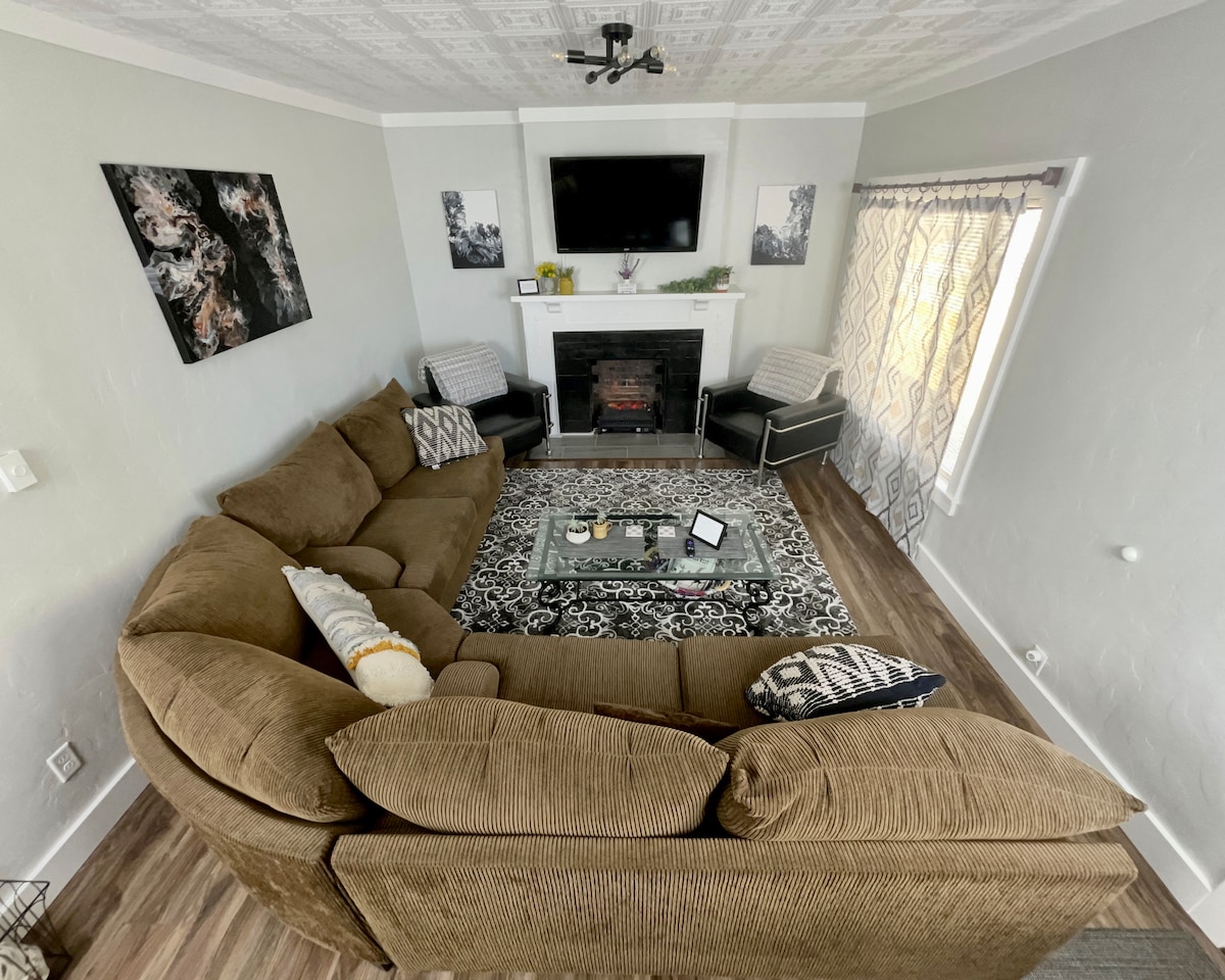 ಸಾಹಸದ ದಿನದ ನಂತರ ಅಥವಾ ಫೈರ್ಪಿಟ್ನಲ್ಲಿ ಸಂಜೆಯನ್ನು ಆನಂದಿಸಿದ ನಂತರ ಹಾಟ್ ಟಬ್ನಲ್ಲಿ ವಿಶ್ರಾಂತಿ ಪಡೆಯುವುದನ್ನು ಕಲ್ಪಿಸಿಕೊಳ್ಳಿ. ಈ 4-ಬೆಡ್ರೂಮ್ ಓಯಸಿಸ್ ಡೌನ್ಟೌನ್ ಬೆಲೆಯ ಹೃದಯಭಾಗದಲ್ಲಿದೆ! ಕುಟುಂಬಗಳು, ಸ್ನೇಹಿತರು ಅಥವಾ ಗುಂಪುಗಳಿಗೆ ಸೂಕ್ತವಾಗಿದೆ, ಈ ಸುಂದರವಾದ ಮನೆಯು ಎಲ್ಲವನ್ನೂ ಹೊಂದಿದೆ! ವಿಶಾಲವಾದ ಸಂಪೂರ್ಣ ಸುಸಜ್ಜಿತ ಅಡುಗೆಮನೆ, ಹೈ-ಸ್ಪೀಡ್ ವೈ-ಫೈ, ಸ್ಮಾರ್ಟ್ ಟಿವಿಗಳು, ವಾಷರ್ ಮತ್ತು ಡ್ರೈಯರ್, ಆರ್ಕೇಡ್, BBQ ಮತ್ತು ಹಿತ್ತಲಿನ ಒಳಾಂಗಣವನ್ನು ಆನಂದಿಸಿ. ಸ್ಥಳೀಯ ಆಕರ್ಷಣೆಗಳು, ರೆಸ್ಟೋರೆಂಟ್ಗಳು, ಬಾರ್ಗಳು ಮತ್ತು ಅಂಗಡಿಗಳು ವಾಕಿಂಗ್ ದೂರದಲ್ಲಿವೆ! ನಿಮ್ಮ ಗುಂಪು ಇಷ್ಟಪಡುವ ಅದ್ಭುತ ವಾಸ್ತವ್ಯಕ್ಕಾಗಿ ಈಗಲೇ ಬುಕ್ ಮಾಡಿ!
