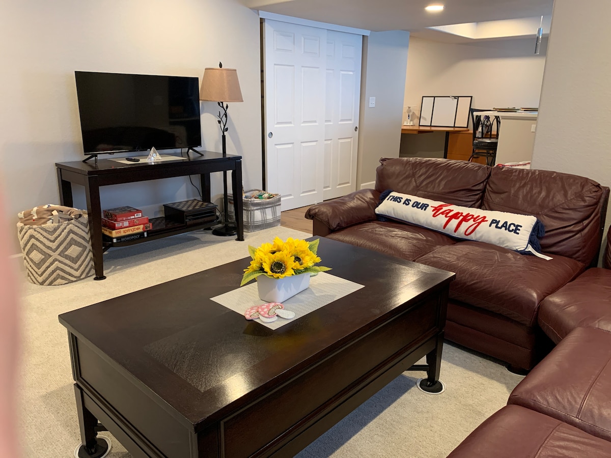 ವಿಶಾಲವಾದ ಆರಾಮದಾಯಕ ವಾಕ್ಔಟ್ ಬೇಸ್ಮೆಂಟ್.