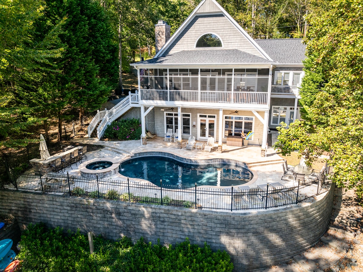 ಲೇಕ್ಸ್ಸೈಡ್ ವಿಲ್ಲಾ ಅಂತಿಮ ಸರೋವರದ ರಿಟ್ರೀಟ್ ಆಗಿದೆ-ಪ್ರೈವೇಟ್ ಪೂಲ್, ಕವರ್ಡ್ ಬೋಟ್ ಡಾಕ್, ಎರಡು ಗೇಮ್ ರೂಮ್ಗಳು ಮತ್ತು ಬೃಹತ್ ಮಲ್ಟಿ-ಲೆವೆಲ್ ಡೆಕ್ಗಳೊಂದಿಗೆ ಪೂರ್ಣಗೊಂಡಿದೆ. 3 ಬೆಡ್ರೂಮ್ಗಳು, 5 ಬಾತ್ರೂಮ್ಗಳು ಮತ್ತು ಬೆರಗುಗೊಳಿಸುವ ಸರೋವರ ವೀಕ್ಷಣೆಗಳೊಂದಿಗೆ, ಇದು ಶೈಲಿಯಲ್ಲಿ ವಿಶ್ರಾಂತಿ ಪಡೆಯಲು ಬಯಸುವ ಕುಟುಂಬಗಳು, ಗುಂಪುಗಳು ಅಥವಾ ದಂಪತಿಗಳಿಗೆ ಸೂಕ್ತವಾಗಿದೆ. ದಿನವಿಡೀ ಪ್ಲೇ ಮಾಡಿ, ಡೆಕ್ನಲ್ಲಿ ಗ್ರಿಲ್ ಮಾಡಿ ಅಥವಾ ಸರೋವರವನ್ನು ಪ್ಯಾಡಲ್ ಮಾಡಿ. ಪೂಲ್ಸೈಡ್ನಲ್ಲಿ ವಿಶ್ರಾಂತಿ ಪಡೆಯುತ್ತಿರಲಿ ಅಥವಾ ಅಗ್ಗಿಷ್ಟಿಕೆ ಸುತ್ತಲೂ ಒಟ್ಟುಗೂಡುತ್ತಿರಲಿ, ಈ ಮನೆಯು ವಿಶ್ರಾಂತಿ, ಮನರಂಜನೆ ಮತ್ತು ನೆನಪುಗಳನ್ನು ಮಾಡಲು ಸ್ಥಳಾವಕಾಶವನ್ನು ನೀಡುತ್ತದೆ.