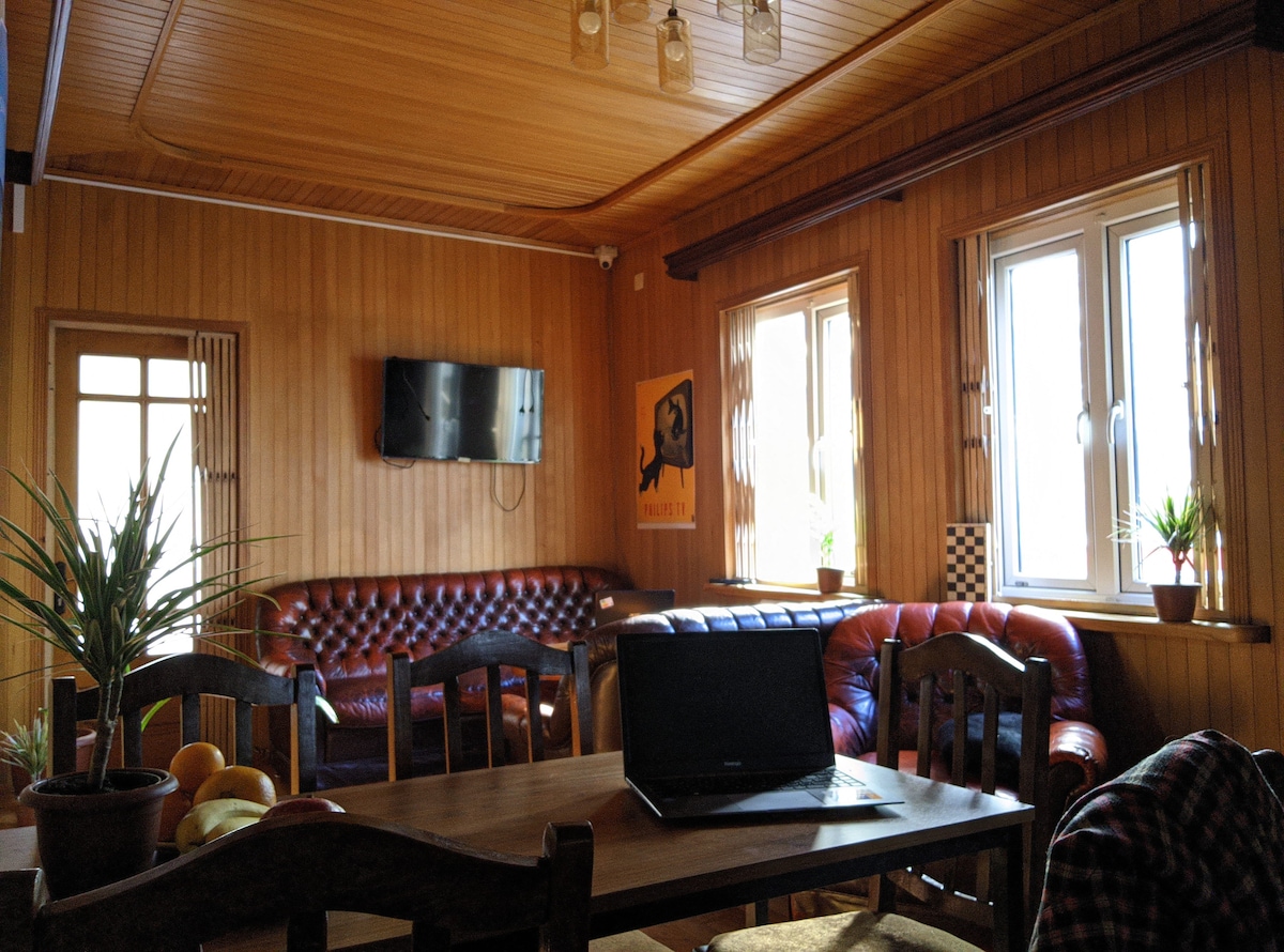 ಹೊಸ ಸ್ಥಳ, ಅದೇ ಆರಾಮದಾಯಕತೆ! ಪ್ರವಾಸಿಗರಿಗಾಗಿ ಚಿಂತನಶೀಲವಾಗಿ ವಿನ್ಯಾಸಗೊಳಿಸಲಾದ ಬಟುಮಿಯ ಆಕರ್ಷಕ ಹಳೆಯ ಪಟ್ಟಣದಲ್ಲಿ ಸಂಪೂರ್ಣವಾಗಿ ನವೀಕರಿಸಲಾಗಿದೆ ಮತ್ತು ಇದೆ. ವಿಶಾಲವಾದ ಅಡುಗೆಮನೆಯು ಸಂಪೂರ್ಣವಾಗಿ ಸುಸಜ್ಜಿತವಾಗಿದೆ, ದೊಡ್ಡ ಡೈನಿಂಗ್ ಟೇಬಲ್ಗಳು ಗುಂಪು ಊಟಕ್ಕೆ ಸೂಕ್ತವಾಗಿವೆ. ಮೃದುವಾದ ಕುರ್ಚಿಗಳು ಮತ್ತು ಮೀಸಲಾದ ಕಾರ್ಯಕ್ಷೇತ್ರವನ್ನು ಹೊಂದಿರುವ ಆರಾಮದಾಯಕ ಸಾಮಾನ್ಯ ಪ್ರದೇಶ. ಡಾರ್ಮ್ ಕ್ಯಾಪ್ಸುಲ್ ಶೈಲಿಯ ಹಾಸಿಗೆಗಳು ವೈಯಕ್ತಿಕ ಲಾಕರ್ಗಳು ಮತ್ತು ಮೃದುವಾದ ಬೆಳಕಿನೊಂದಿಗೆ ಆರಾಮದಾಯಕವಾಗಿವೆ. ಸ್ಪಾಟ್ಲೆಸ್ ಸೌಲಭ್ಯಗಳಲ್ಲಿ ಎರಡು ದೊಡ್ಡ ಶವರ್ಗಳು, ಎರಡು ಶೌಚಾಲಯಗಳು ಮತ್ತು ಲಾಂಡ್ರಿ ಸೇರಿವೆ. ಸ್ವಚ್ಛ, ಆರಾಮದಾಯಕ, ಅನುಕೂಲಕರ ಮತ್ತು ಸ್ವಾಗತಾರ್ಹ ವಾಸ್ತವ್ಯವು ಕಾಯುತ್ತಿದೆ!