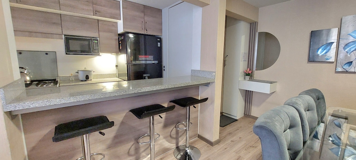 ಎರಡನೇ ಮಹಡಿಯಲ್ಲಿರುವ ನಮ್ಮ ಅಪಾರ್ಟ್ಮೆಂಟ್ನ ಆರಾಮ ಮತ್ತು ಅವಿಭಾಜ್ಯ ಸ್ಥಳದಲ್ಲಿ ಉಳಿಯಿರಿ. ನಾವು ವಿಮಾನ ನಿಲ್ದಾಣದಿಂದ ಕೇವಲ 10 ನಿಮಿಷಗಳು ಮತ್ತು ಡೌನ್ಟೌನ್ನಿಂದ 20 ನಿಮಿಷಗಳು, ಸ್ತಬ್ಧ ಮತ್ತು ಸುರಕ್ಷಿತ ಪ್ರದೇಶದಲ್ಲಿ, ಅಲ್ಲಿ ನೀವು ನಿಮ್ಮ ಕಾರನ್ನು ಅಭಿವೃದ್ಧಿಯೊಳಗೆ ಬಿಡಬಹುದು. ಹತ್ತಿರದಲ್ಲಿ ನೀವು ಅಂಗಡಿಗಳು, ರೆಸ್ಟೋರೆಂಟ್ಗಳು, ಬ್ಯಾಂಕುಗಳು ಮತ್ತು ಜಿಮ್ಗಳನ್ನು ಹೊಂದಿರುವ ಮಾಲ್ ಅನ್ನು ಕಾಣುತ್ತೀರಿ. ಅಪಾರ್ಟ್ಮೆಂಟ್ 3 ಬೆಡ್ರೂಮ್ಗಳು, 3 ಹಾಸಿಗೆಗಳು, 50"ಸ್ಮಾರ್ಟ್ ಟಿವಿ, ಸಂಪೂರ್ಣ ಸುಸಜ್ಜಿತ ಅಡುಗೆಮನೆ ಮತ್ತು ಬಿಸಿ ನೀರನ್ನು ಹೊಂದಿದೆ. ನೀವು 24/7 ಭದ್ರತೆ ಮತ್ತು ಅತ್ಯುತ್ತಮ ನೈಸರ್ಗಿಕ ಬೆಳಕನ್ನು ಆನಂದಿಸುತ್ತೀರಿ.