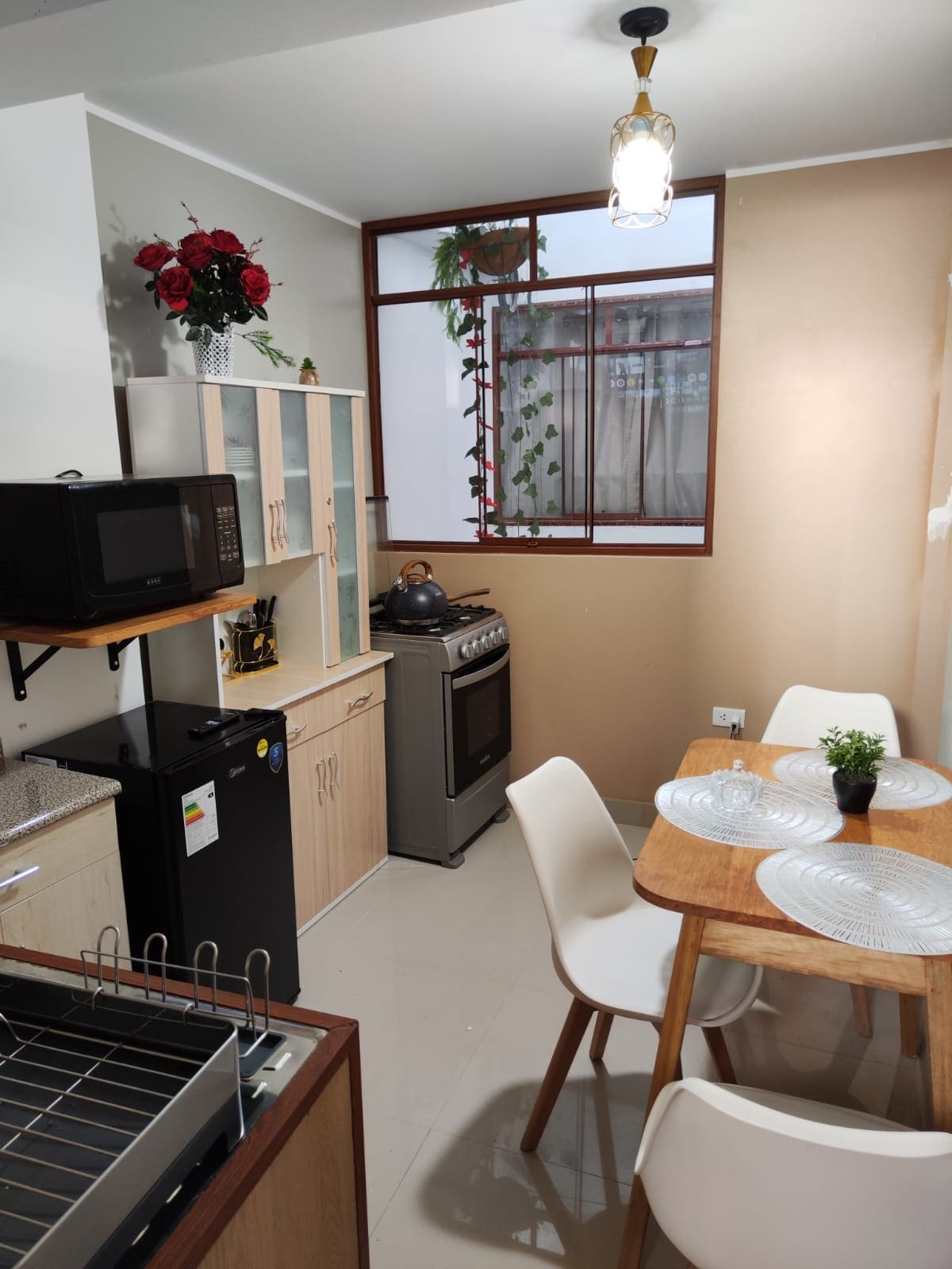 🏡 Departamento con tres habitaciones con su baño privado, ideal para familias o grupos de hasta 6 personas. Cada habitación cuenta con cama matrimonial baño privado con agua caliente, televisor Wi-Fi Netflix y YouTube Premium. El departamento dispone de cocina comedor equipada para preparar y disfrutar tus comidas favoritas, además de una lavandería. 🧺 Puedes usar la lavadora y el tendal. 🚗 Contamos con cochera privada según disponibilidad.