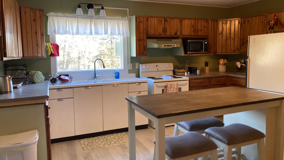 ನೀವು ಈ ಕೇಂದ್ರೀಕೃತ ಸ್ಥಳದಲ್ಲಿ ವಾಸ್ತವ್ಯ ಹೂಡಿದಾಗ ನಿಮ್ಮ ಕುಟುಂಬವು ಎಲ್ಲದಕ್ಕೂ ಹತ್ತಿರವಾಗಿರುತ್ತದೆ. ನಾವು ಮೌಂಟ್ ರಶ್ಮೋರ್ನಿಂದ ದಕ್ಷಿಣಕ್ಕೆ 107 ಮೈಲುಗಳಷ್ಟು ದೂರದಲ್ಲಿರುವ ಚಾಡ್ರನ್, NE ನಲ್ಲಿದ್ದೇವೆ (1 ಗಂಟೆ 45 ನಿಮಿಷದ ಡ್ರೈವ್). ವಾಕಿಂಗ್ ಟ್ರೇಲ್ಗಳು ಮತ್ತು ಮಕ್ಕಳಿಗಾಗಿ ಆಟದ ಮೈದಾನವನ್ನು ಒಳಗೊಂಡಿರುವ ಉದ್ಯಾನವನದ ಎದುರು ನಾವು ವಾಸಿಸುತ್ತೇವೆ. ಈ ಅಪಾರ್ಟ್ಮೆಂಟ್ ನಮ್ಮ ಮನೆಗೆ ಸಂಪರ್ಕ ಹೊಂದಿದೆ ಆದರೆ ಪ್ರತ್ಯೇಕ ಪ್ರವೇಶ ಮಾರ್ಗವನ್ನು ಹೊಂದಿದೆ ಆದ್ದರಿಂದ ನೀವು ನಿಮ್ಮ ಗೌಪ್ಯತೆಯನ್ನು ಹೊಂದಿರುತ್ತೀರಿ. 1 ಕ್ವೀನ್ ಬೆಡ್ ಮತ್ತು 2 ಅವಳಿ ಬೆಡ್ಗಳೊಂದಿಗೆ 4 ಆರಾಮವಾಗಿ ಮಲಗಬಹುದು. ಆರಾಮದಾಯಕ ಅಪಾರ್ಟ್ಮೆಂಟ್ ವೈಫೈ ಮತ್ತು ಪ್ರಮೇಯ ಪಾರ್ಕಿಂಗ್ ಅನ್ನು ಹೊಂದಿದೆ.