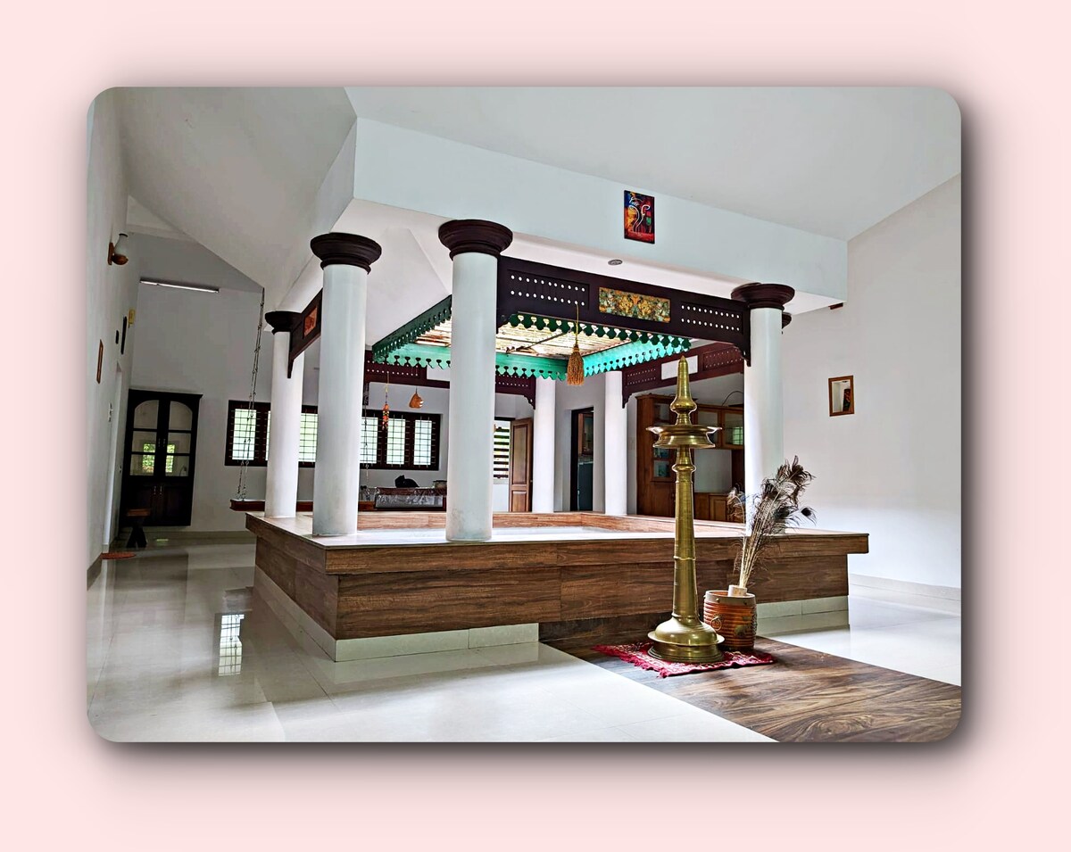 ಸುಂದರವಾಗಿ ಸಂರಕ್ಷಿಸಲ್ಪಟ್ಟ ಸಾಂಪ್ರದಾಯಿಕ ನಲುಕೆಟ್ಟು (ಅಂಗಳ) ಮನೆಯಾದ ಸೌಭದ್ರದಲ್ಲಿ ಕೇರಳದ ಆತ್ಮವನ್ನು ಅನುಭವಿಸಿ. ಕೊಲ್ಲಂನ ಶಾಂತ ನೆರೆಹೊರೆಯಲ್ಲಿ ನೆಲೆಗೊಂಡಿರುವ ನಮ್ಮ ಮನೆ ಆಧುನಿಕ ಸೌಕರ್ಯವನ್ನು ಬಿಟ್ಟುಕೊಡದೆ ಅಧಿಕೃತ ಪರಂಪರೆಯ ವಾಸ್ತುಶಿಲ್ಪದಲ್ಲಿ ವಾಸಿಸಲು ಅಪರೂಪದ ಅವಕಾಶವನ್ನು ನೀಡುತ್ತದೆ. ನೀವು ಶಾಂತವಾದ ವಿಶ್ರಾಂತಿಯನ್ನು ಬಯಸುತ್ತಿರಲಿ, ಮುನ್ರೋ ದ್ವೀಪವನ್ನು ಅನ್ವೇಷಿಸಲು ಒಂದು ನೆಲೆಯನ್ನು ಬಯಸುತ್ತಿರಲಿ ಅಥವಾ ಕೇವಲ ಪುನರ್ಯೌವನಗೊಳ್ಳಲು ಒಂದು ಸ್ಥಳವನ್ನು ಬಯಸುತ್ತಿರಲಿ, ನಮ್ಮ ಬಾಗಿಲುಗಳು ತೆರೆದಿವೆ.