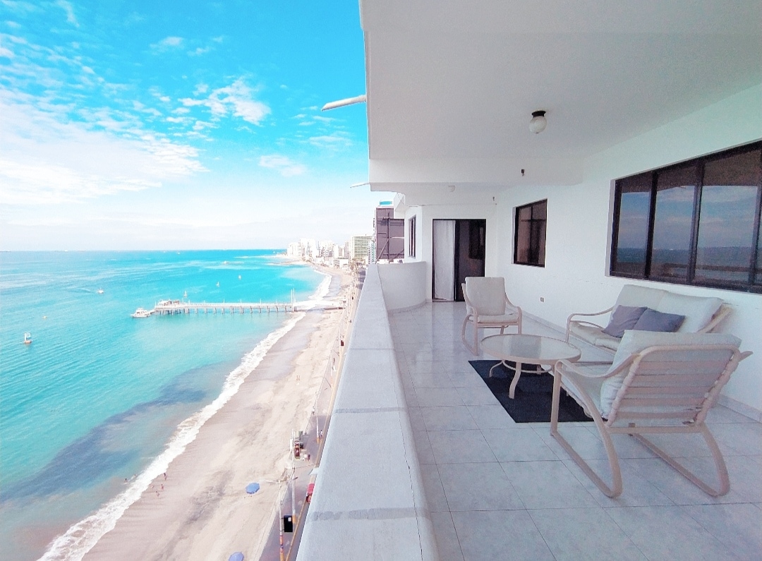 Beautiful spacious apartment in front of the beach. Wonderful ocean view. Located at Malecon Principal of Salinas, close to bars and restaurants. You can enjoy the sea with multiple activities such as swim, waverunner, boat ride, water parks and water sports. Reservations over 28 years old... PARTIES PROHIBITED
