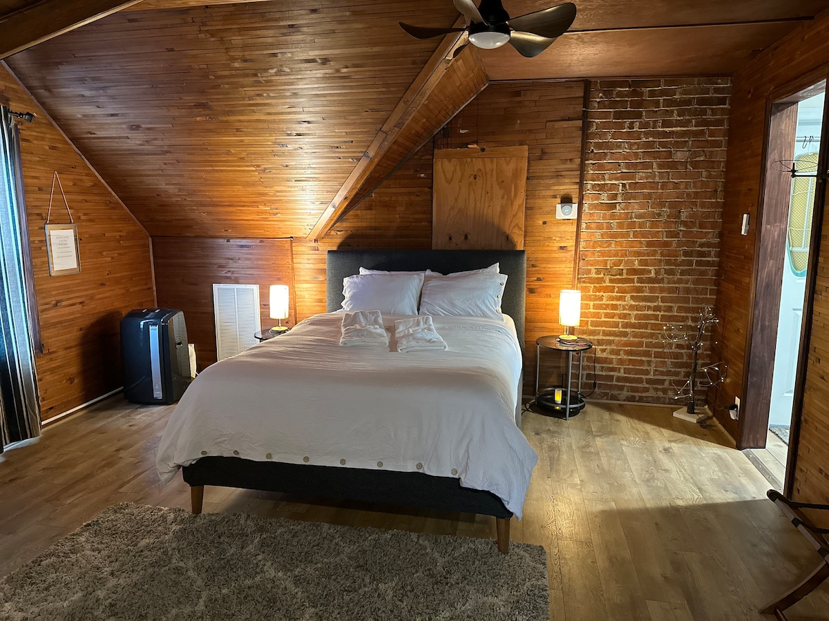 ಈ ನಿಖರವಾಗಿ ಸಂಗ್ರಹಿಸಲಾದ ಜಪಾನಿ-ಪ್ರೇರಿತ ಸ್ಟುಡಿಯೋ ರಿಮೋಟ್ ಕೆಲಸ ಅಥವಾ ಶಾಂತಿಯುತ ಹಿಮ್ಮೆಟ್ಟುವಿಕೆಗೆ ಸೂಕ್ತವಾಗಿದೆ. ಈ ಸ್ಥಳವು ಆರಾಮದಾಯಕ ರಾಣಿ ಹಾಸಿಗೆ, ಸಣ್ಣ ಲವ್ಸೀಟ್ ಮತ್ತು ಆಸನ ಪ್ರದೇಶವನ್ನು ಒಳಗೊಂಡಿದೆ. ಉತ್ಪಾದಕತೆಗಾಗಿ ಹೈ-ಸ್ಪೀಡ್ ಇಂಟರ್ನೆಟ್, ಟಿವಿ ಮತ್ತು ಬರವಣಿಗೆಯ ಡೆಸ್ಕ್ ಅನ್ನು ಆನಂದಿಸಿ. ಸೂಟ್ ಫ್ರಿಜ್, ಮೈಕ್ರೊವೇವ್ ಮತ್ತು ಕಾಫಿ ಮೇಕರ್ ಹೊಂದಿರುವ ಅಡಿಗೆಮನೆಯನ್ನು ಒಳಗೊಂಡಿದೆ. ವಿಶ್ರಾಂತಿಗಾಗಿ ಹಿತ್ತಲಿನ ಫೈರ್ ಪಿಟ್ಗೆ ಪ್ರವೇಶದೊಂದಿಗೆ ಶಾಂತ, ಸುರಕ್ಷಿತ ನೆರೆಹೊರೆಯಲ್ಲಿ ಇದೆ. ಶಾಂತ, ಆರಾಮದಾಯಕ ಮತ್ತು ಉತ್ಪಾದಕ ವಾಸ್ತವ್ಯಕ್ಕೆ ಸೂಕ್ತವಾಗಿದೆ.
