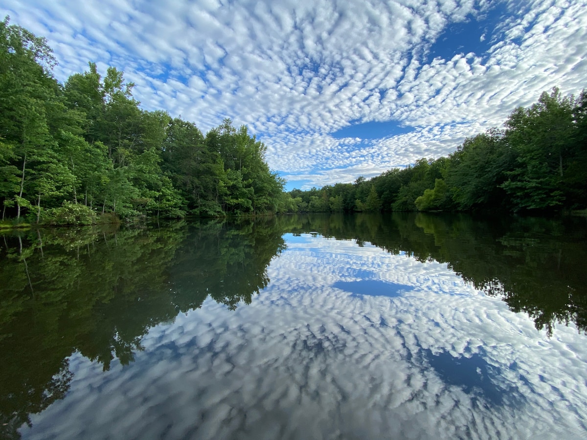 ನಮ್ಮ ಕೊಳದ ಮೇಲಿರುವ ಏಕಾಂತ ಗೇಟ್ ಸೆಟ್ಟಿಂಗ್ನಲ್ಲಿರುವ ಹಕಲ್ಬೆರ್ರಿಯ ಕಾಟೇಜ್, 2 ಬೆಡ್ರೂಮ್ಗಳು, 2 ಸ್ನಾನದ ಕೋಣೆಗಳು. ನಮ್ಮ ಕಾಟೇಜ್ ಗೆಸ್ಟ್ಗಳು ಸುಂದರವಾದ ಕೊಳದ ಮೇಲಿರುವ ಮುಖಮಂಟಪದಲ್ಲಿ ಕುಳಿತು ಆನಂದಿಸುತ್ತಾರೆ, ನಮ್ಮ ಕೊಳದ ಸುತ್ತಲೂ 1/2 ಮೈಲಿ ನಡೆಯುತ್ತಾರೆ ಅಥವಾ ಡಾಕ್ ಮೀನುಗಾರಿಕೆಯಲ್ಲಿ ಕುಳಿತುಕೊಳ್ಳುತ್ತಾರೆ ಅಥವಾ ಜಲಪಾತದಂತಹ ಕಾರಂಜಿ ಶಬ್ದಗಳನ್ನು ಕೇಳುತ್ತಾರೆ. ಕೆಲವು ಬಾಸ್ ಮತ್ತು ಬ್ರೀಮ್ ಮೀನುಗಾರಿಕೆಗಾಗಿ ಕೊಳದಲ್ಲಿ ನಮ್ಮೊಂದಿಗೆ ಸೇರಲು ನಾವು ನಿಮ್ಮನ್ನು ಆಹ್ವಾನಿಸುತ್ತೇವೆ, ದಯವಿಟ್ಟು ಮೀನುಗಾರಿಕೆ ಗೇರ್ ತಂದು ನಿಮ್ಮ ವಿರಾಮದ ಸಮಯದಲ್ಲಿ ಮೀನುಗಾರಿಕೆಯನ್ನು ಆನಂದಿಸಿ. ಏಂಜೆಲಾ ಮತ್ತು ಜೇಮ್ಸ್ ಸೂಪರ್ಹೋಸ್ಟ್