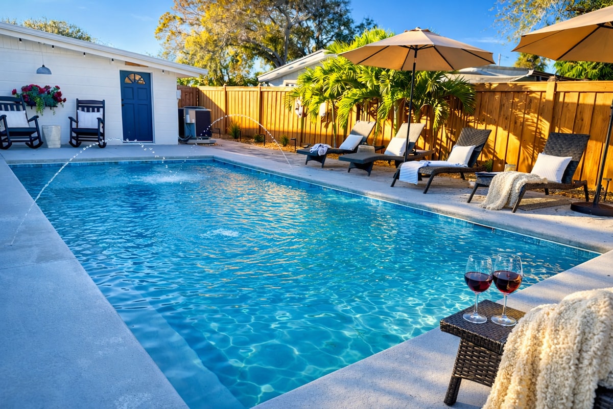 ಉಷ್ಣವಲಯದ ಬಿಸಿಯಾದ ಪೂಲ್ ಮನೆ, ಕಡಲತೀರಕ್ಕೆ ಸುಲಭ ನಡಿಗೆ!