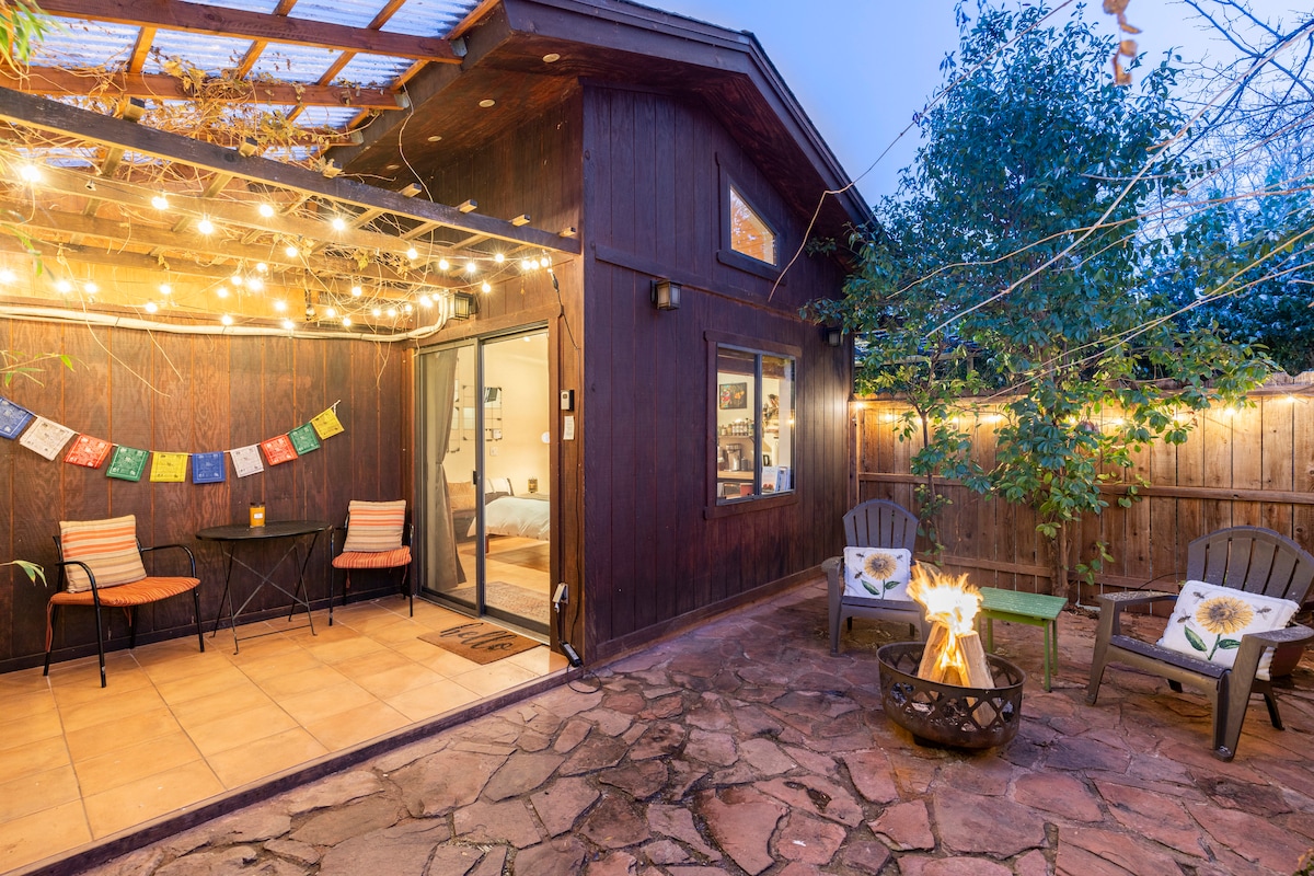 ಶಾಪಿಂಗ್ ಮತ್ತು ಟ್ರೇಲ್ಗಳಿಗೆ ಹತ್ತಿರವಿರುವ ಸ್ತಬ್ಧ ನೆರೆಹೊರೆಯಲ್ಲಿ ಅಡುಗೆಮನೆ ಮತ್ತು ಎನ್ಸೂಟ್ ಬಾತ್ರೂಮ್ನೊಂದಿಗೆ ಖಾಸಗಿ, ಸ್ವಯಂ-ಒಳಗೊಂಡ, ಪ್ರಶಾಂತ ಗೆಸ್ಟ್ ಸೂಟ್ನಲ್ಲಿ ವಿಶ್ರಾಂತಿ ಪಡೆಯಿರಿ. ಮೂರು ಖಾಸಗಿ, ಆರಾಮದಾಯಕ ಹೊರಾಂಗಣ ಆಸನ ಸ್ಥಳಗಳೊಂದಿಗೆ ಖಾಸಗಿ ಒಳಾಂಗಣ ಪ್ರವೇಶ, ಒಂದು ಫೈರ್ ಪಿಟ್ನೊಂದಿಗೆ - ಬೆಳಗಿನ ಕಾಫಿ ಮತ್ತು ರಾತ್ರಿಯ ನಕ್ಷತ್ರ ವೀಕ್ಷಣೆಗೆ ಅದ್ಭುತವಾಗಿದೆ! ಟ್ರೇಲ್ಹೆಡ್ಗಳು, ರೆಸ್ಟೋರೆಂಟ್ಗಳು, ಸ್ಪಾಗಳು, ಕಾಫಿ ಶಾಪ್ಗಳು, ಪೀಸ್ ಸ್ತೂಪ, ದಿನಸಿ ಅಂಗಡಿಗಳು, ಶಟಲ್ ಬಸ್ ನಿಲ್ದಾಣದ ಬಳಿ ವೆಸ್ಟ್ ಸೆಡೋನಾದಲ್ಲಿ ಸೂಕ್ತ ಸ್ಥಳ! ಅಲರ್ಜಿಗಳಿಂದಾಗಿ, ನಾವು ಬೆಂಬಲ ಪ್ರಾಣಿಗಳಿಗೆ ಅವಕಾಶ ಕಲ್ಪಿಸಲು ಸಾಧ್ಯವಿಲ್ಲ.