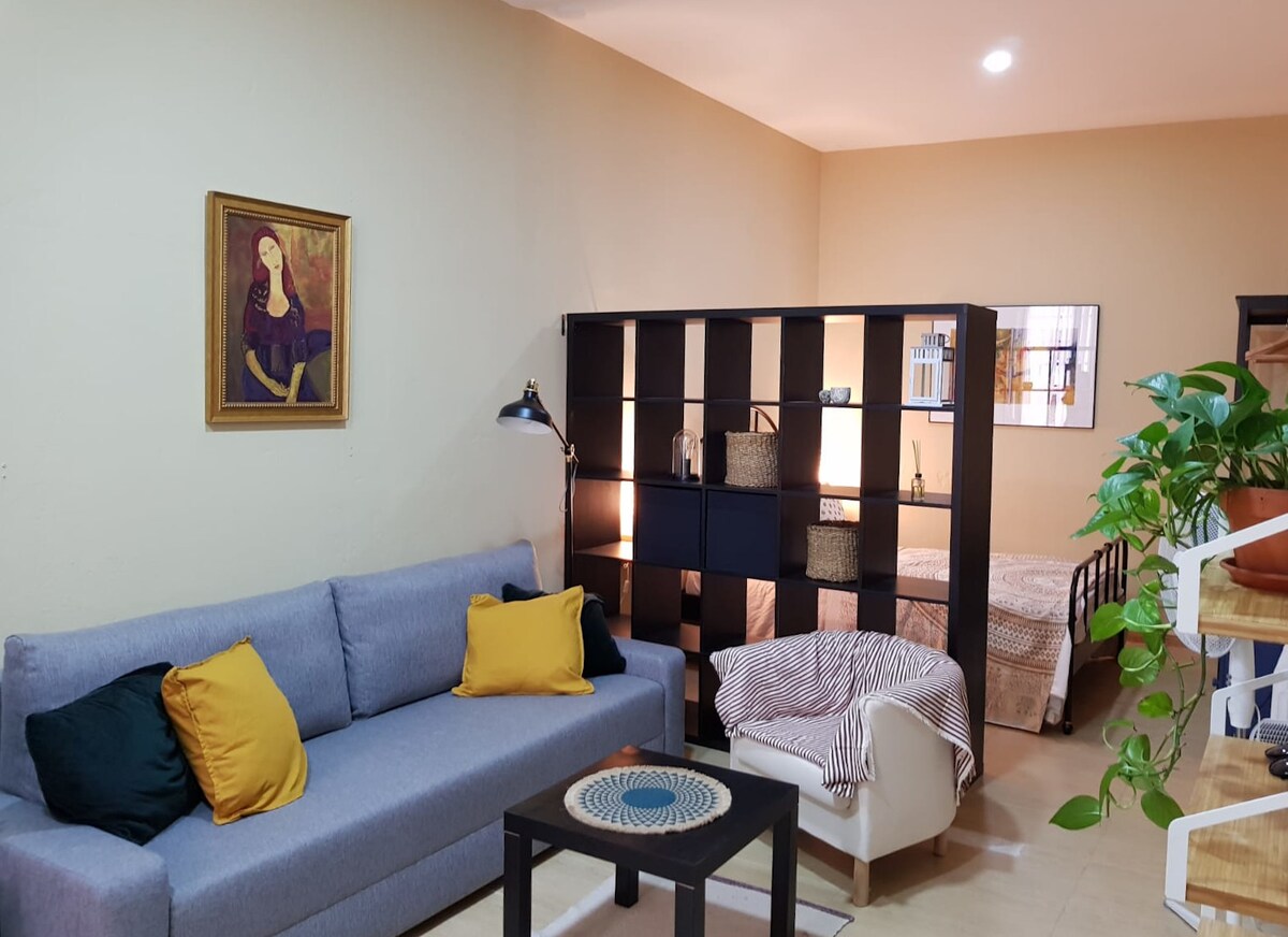 Bonito estudio tipo "loft" para dos personas en el centro de Zahara de los Atunes y a sólo 200 metros de la playa. Cama de matrimonio, zona de estar con sofá y cocina totalmente equipada. También incluye utensilios de cocina, toallas y sábanas. Los estudios no tienen limpieza diaria ni cambio de sábanas ni toallas. Todos nuestros estudios son limpiados a la salida y entrada de los huéspedes. Las puertas se abren con códigos. * NO SE ADMITEN MASCOTAS