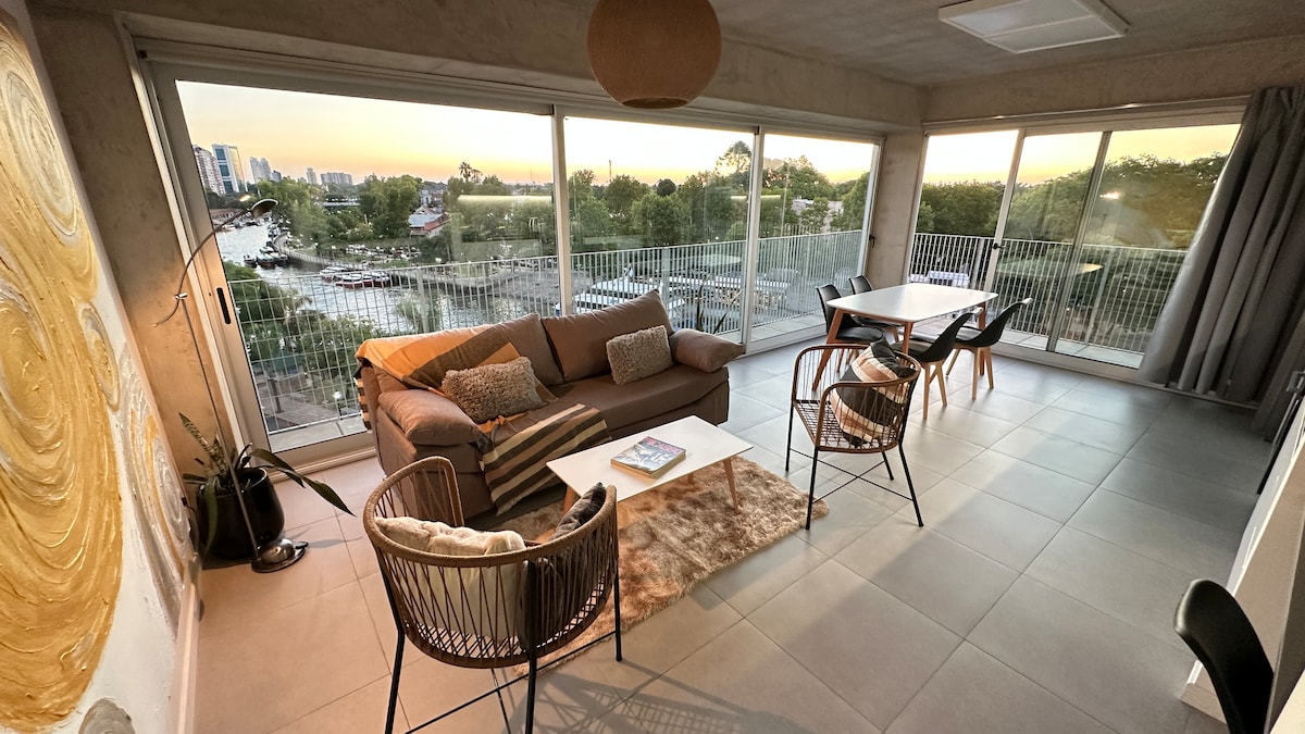 ಟೈಗ್ರೆ ಪ್ರವಾಸಿ ಪ್ರದೇಶದ ಮೇಲೆ ಇರುವ ಈ ವಿಶಿಷ್ಟ ಮತ್ತು ಶಾಂತಿಯುತ ವಸತಿ ಸೌಕರ್ಯದಲ್ಲಿ ವಿಶ್ರಾಂತಿ ಪಡೆಯಿರಿ. ನದಿಯ ಮುಂದೆ ವಿವಿಧ ಗ್ಯಾಸ್ಟ್ರೊನಮಿಕ್ ಪ್ರಸ್ತಾಪಗಳು, ವಸ್ತುಸಂಗ್ರಹಾಲಯಗಳು ಮತ್ತು ಚೌಕಗಳಿಂದ ಆವೃತವಾಗಿದೆ. ನದಿಯ ಮೇಲೆ ಅತ್ಯಂತ ಸುಂದರವಾದ ಸೂರ್ಯಾಸ್ತಗಳನ್ನು ಹೊಂದಿರುವ ದೊಡ್ಡ ಟೆರೇಸ್, ಕುಟುಂಬ ಅಥವಾ ಸ್ನೇಹಿತರೊಂದಿಗೆ ಹಂಚಿಕೊಳ್ಳಲು. ಸ್ವಂತ ಗ್ಯಾರೇಜ್, ಈಜುಕೊಳ , ಕ್ವಿಂಚೊ ಮತ್ತು ನೆಲ ಮಹಡಿಯಲ್ಲಿ ಹಂಚಿಕೊಂಡ ಲಾಂಡ್ರಿ. ಮುಖ್ಯ ಹುಲಿ ಆಕರ್ಷಣೆಗಳಿಗೆ (ಕ್ಯಾಸಿನೊ, ಕಲಾ ವಸ್ತುಸಂಗ್ರಹಾಲಯ, ಥಿಯೇಟರ್ಗಳು, ಹಣ್ಣಿನ ಬಂದರು, ಕರಾವಳಿ ಉದ್ಯಾನವನ) ಬಹಳ ಹತ್ತಿರದಲ್ಲಿದೆ.